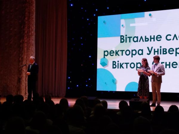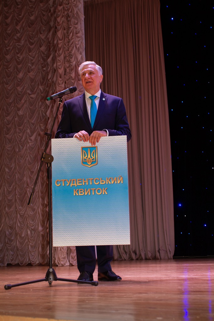 Ректор Університету Грінченка Віктор Огнев'юк висловив щирі привітання студентській спільноті, дав цінні настанови, побажав студентам натхнення, плідної праці та вручив першокурсникам символічний студентський квиток.
