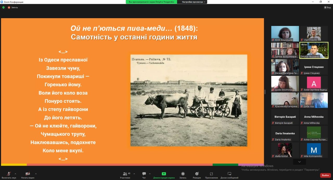 24 травня кафедра світової літератури в межах Фестивалю науки організувала й провела міжнародний захід - гостьову лекцію дослідника-асистента Центру Кулів, Університету Альберти (Едмонтон, Канада), асоційованого дослідника Університету ім. Монаша (Австралія) Дмитра Єсипенка. У заході взяли участь близько пів сотні учасників: студентів-грінченківців, викладачів Університету, випускників кафедри та науковців з інших українських інституцій. Понад двогодинна лекція засвідчила неабияке зацікавлення аудиторії темою "Життя в час нескінченних епідемій: українські та зарубіжні автори про пошесті минулих століть”, важливі текстові наративи, дослідницькі ідеї, лекторські знахідки.