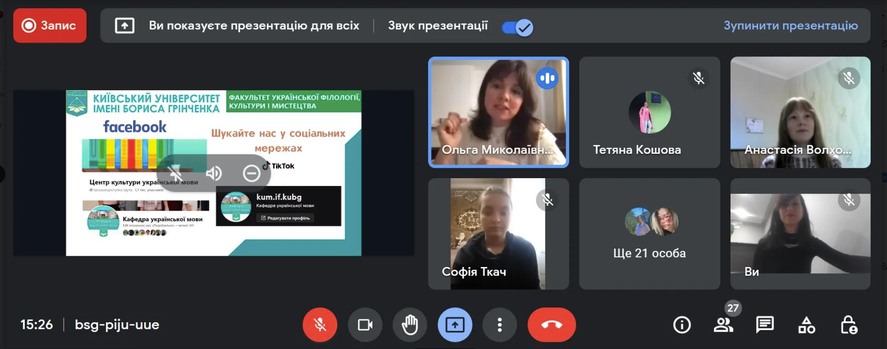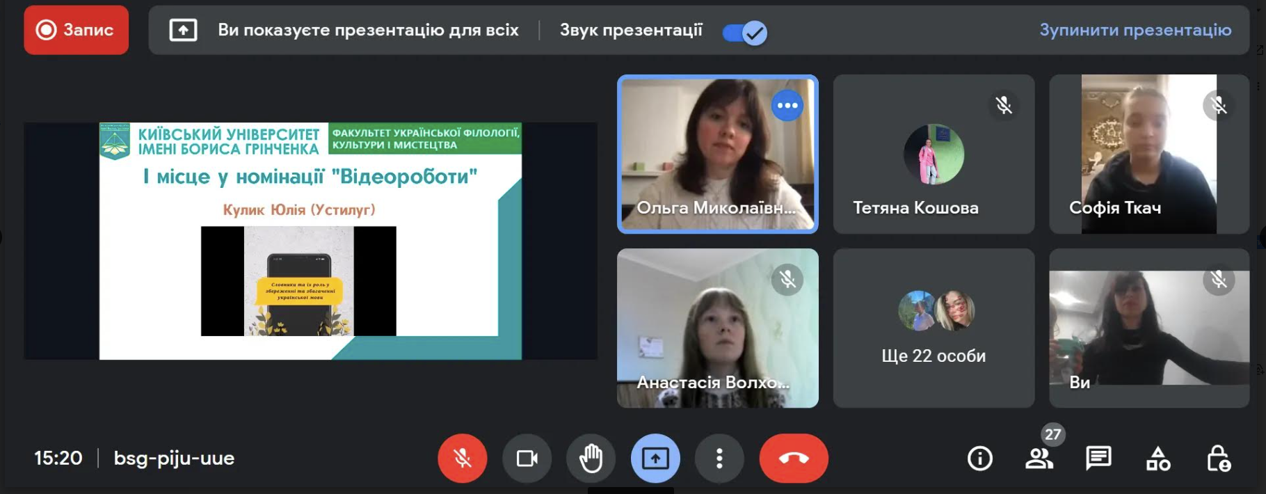 6 грудня 2022 року відбулася онлайнова церемонія оголошення переможців ІІ Всеукраїнського конкурсу проєктів «Українська мова в об’єктиві». Конкурс організовано кафедрою української мови факультету української філології, культури і мистецтва Київського університету імені Бориса Грінченка.
