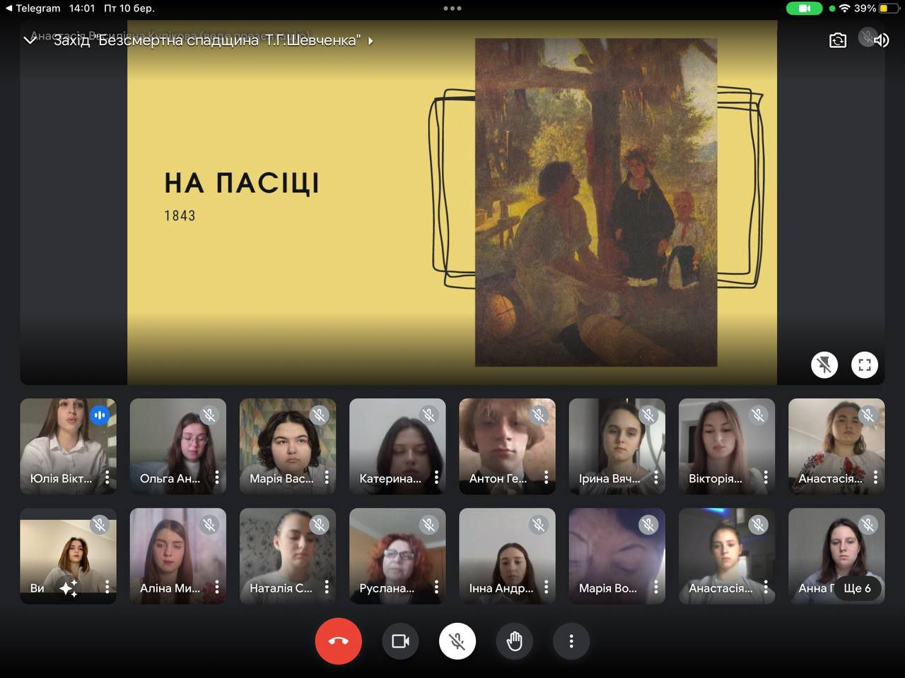 10 березня 2023 року студенти 1-го курсу освітньої програми «Ведучий телевізійних програм» Університету Грінченка під керівництвом куратора Р.А. Новикової провели захід «Безсмертна спадщина Тараса Шевченка». Першокурсники дізналися цікаві та маловідомі факти із життя геніального митця, подивилися презентацію його картин і насолодилися прекрасною Шевченковою поезією.