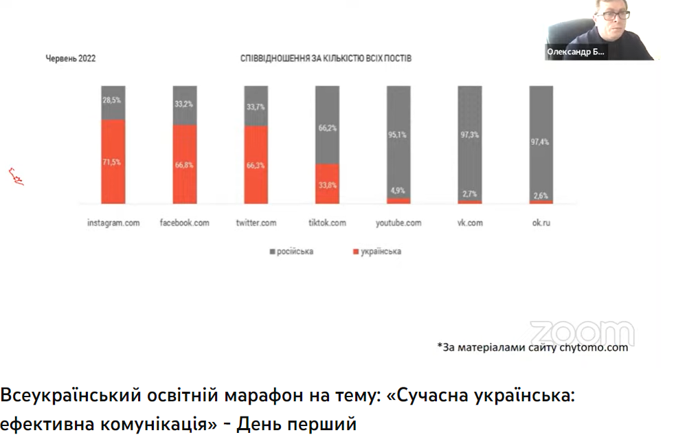21 березня 2023 року викладачі кафедри української мови і члени Наукового товариства студентів, магістрантів, аспірантів та молодих учених Факультету української філології, культури і мистецтва долучилися до онлайнового Всеукраїнського освітнього марафону на тему: «Сучасна українська: ефективна комунікація». Організаторами семінару є Міністерство освіти і науки України, Державна наукова установа «Інститут модернізації змісту освіти», ГО «Ukraine Active».