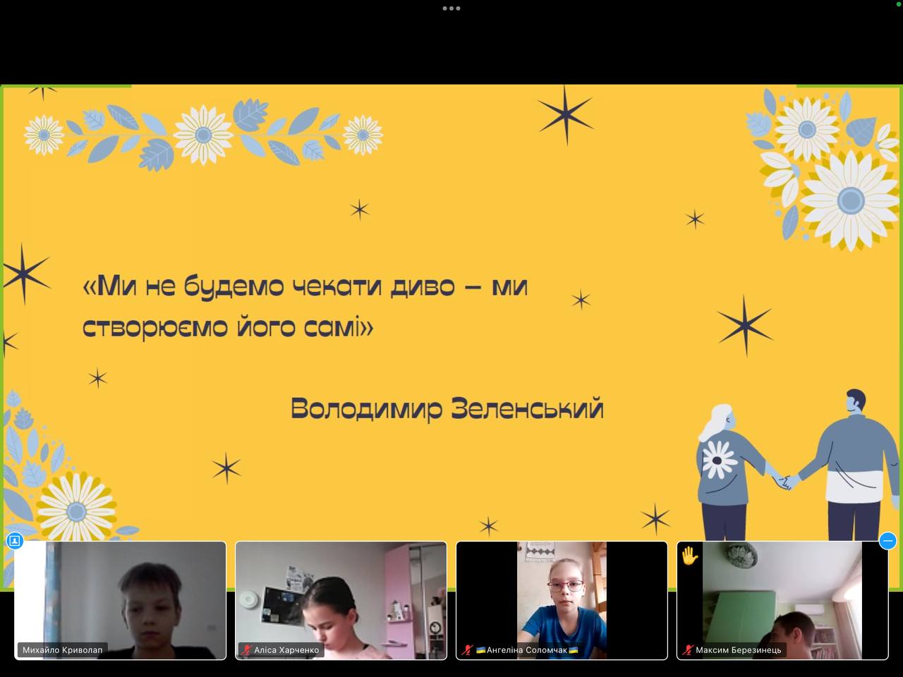 21 квітня 2023 року студенти групи ВТПб-1-22-4.0д Факультету української філології, культури і мистецтва Київського університету імені Бориса Грінченка Шустова В., Гордійчук І., Кулікова А., Друзь О., Черненко А., Шкляренко І., Дорошенко К., Мельник О. в межах реалізації заходів студентського проєкту «Громадянська освіта та підняття духу патріотизму молоді» соціального проєкту «З Києвом і для Києва» провели тематичну онлайн-зустріч із учнями 5 класу спеціалізованої школи 194 «Перспектива» м. Києва (https://www.facebook.com/groups/600814683943598/?ref=share).