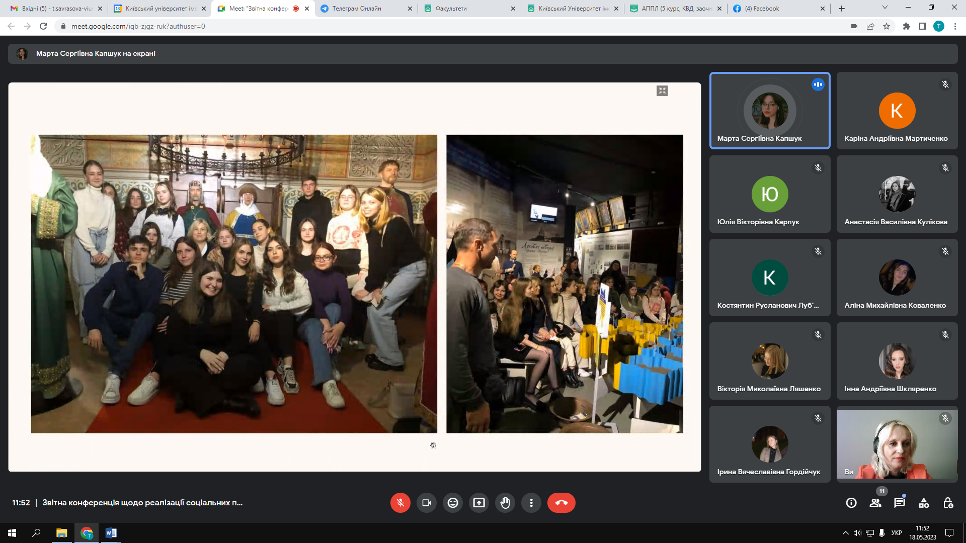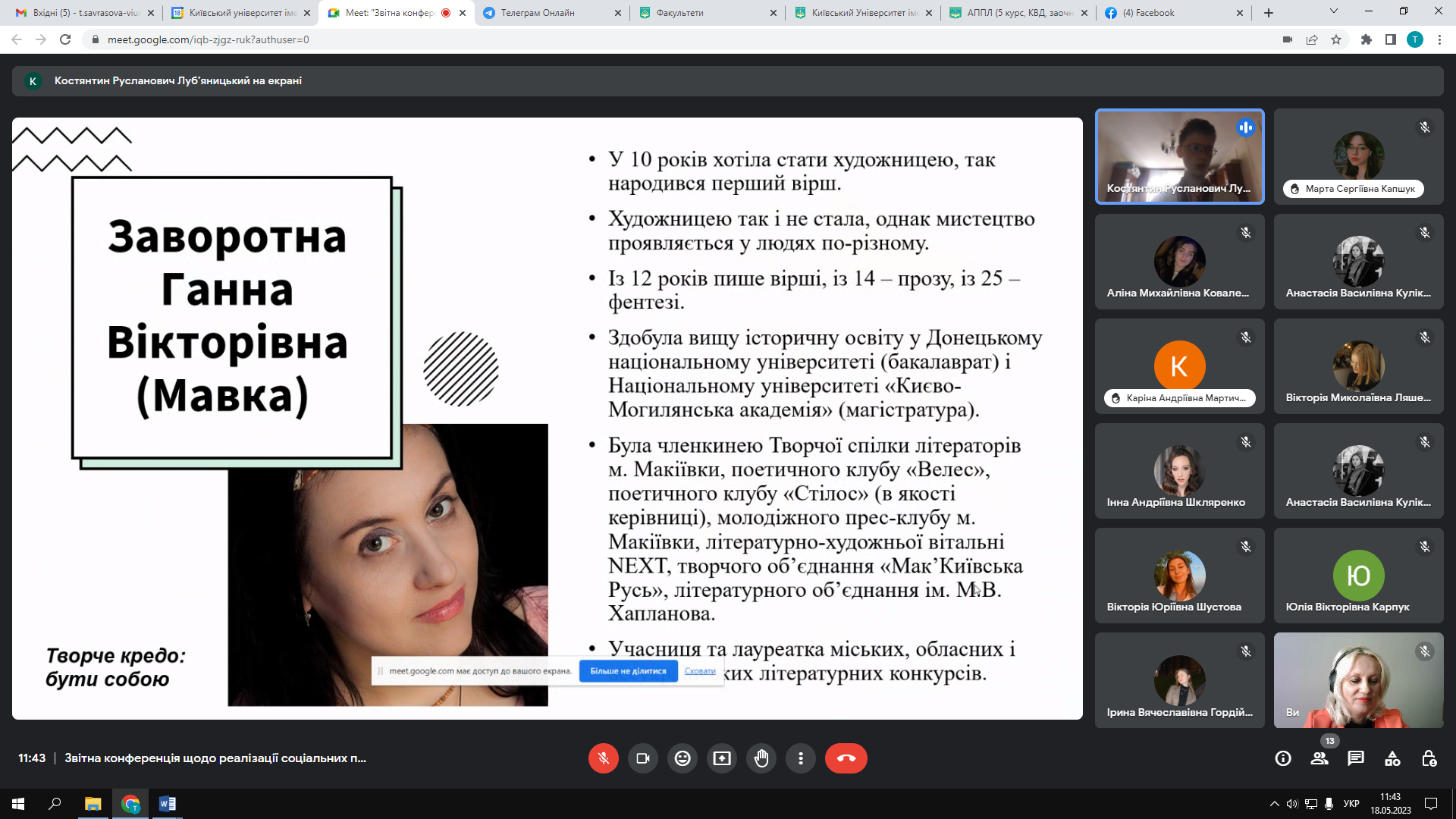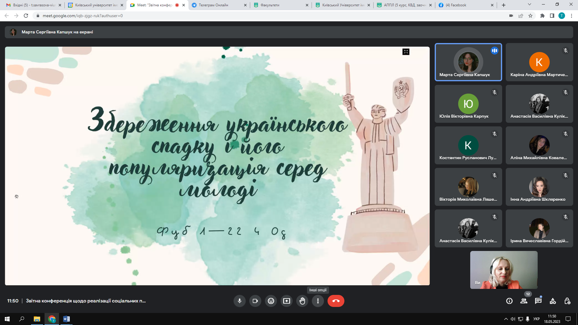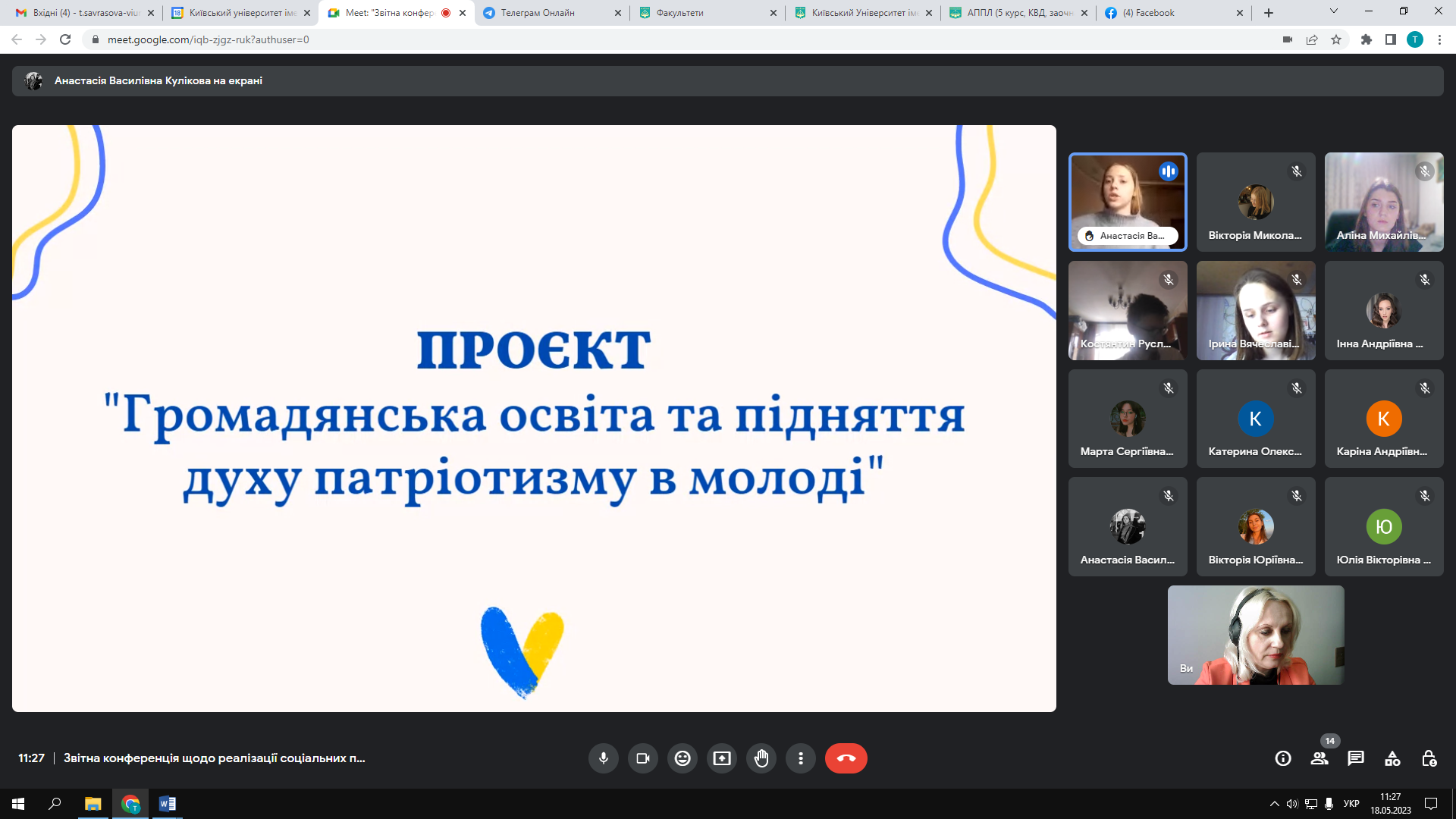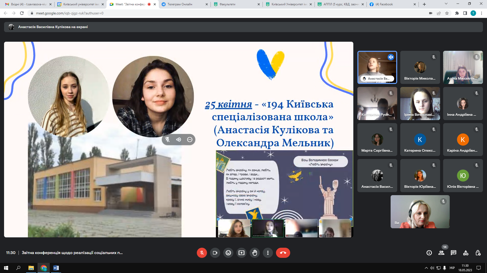 18 травня 2023 року студенти Факультету української філології культури і мистецтва Київського університету імені Бориса Грінченка провели звітну конференцію з питань втілення соціальних проєктів студентських груп у межах реалізації заходів програми «З Києвом і для Києва».
