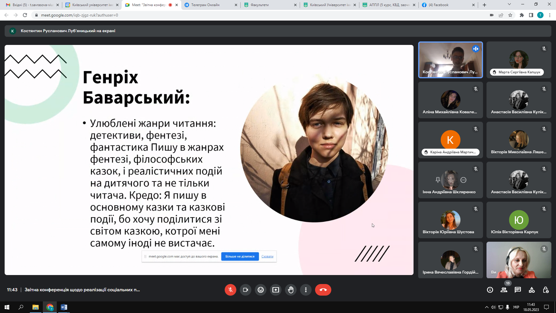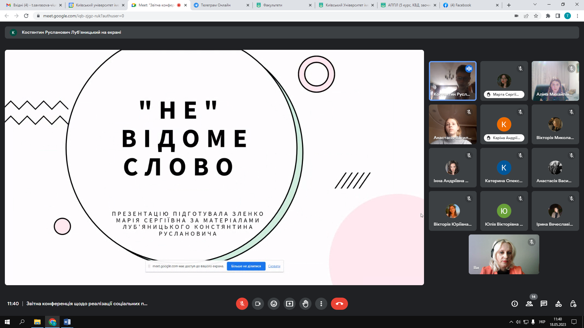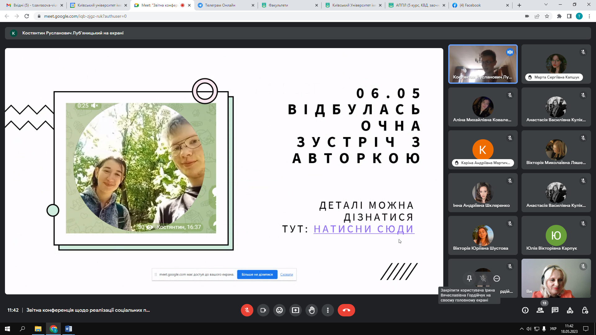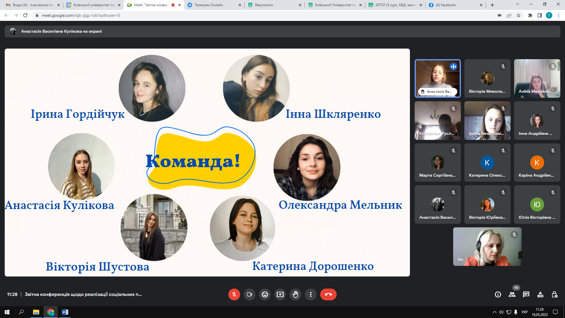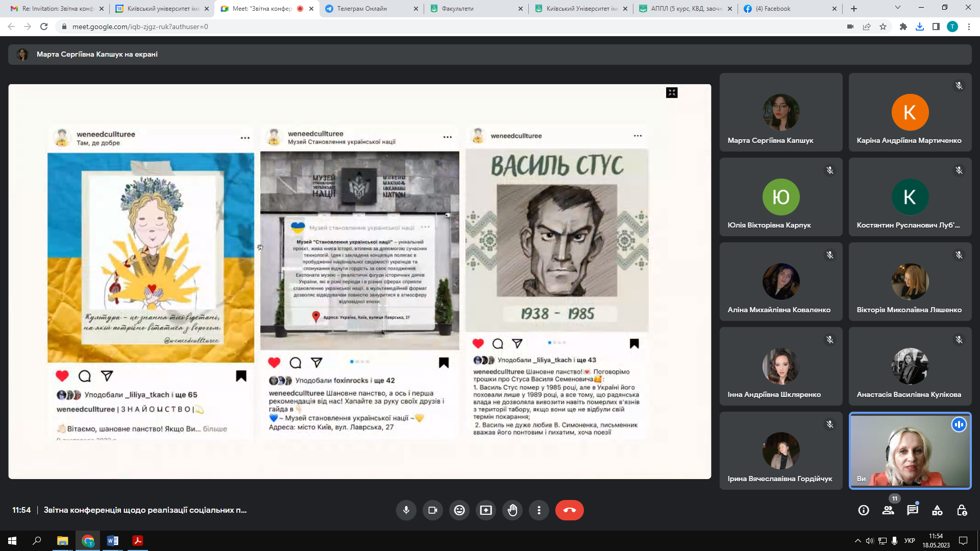 18 травня 2023 року студенти Факультету української філології культури і мистецтва Київського університету імені Бориса Грінченка провели звітну конференцію з питань втілення соціальних проєктів студентських груп у межах реалізації заходів програми «З Києвом і для Києва».