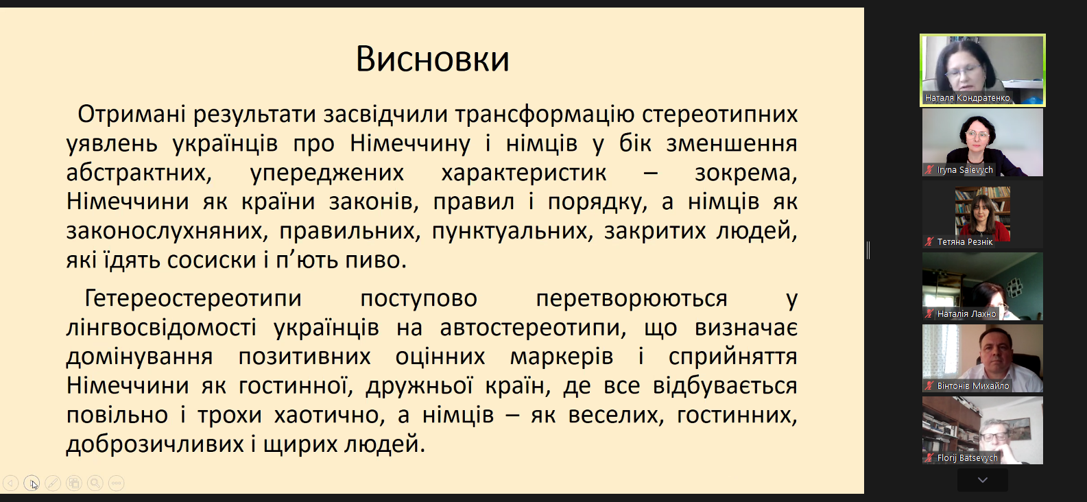 Виступ професора Ф. Бацевича стосувався проблем лінгвістичної типології нараторів містичних текстів. Питання динаміки архаїчного стереотипу «гість» у пареміях порушила М. Жуйкова. Важливі аспекти зміни стереотипів у сприйнятті Німеччини українськими біженцями розкрила Н. Кондратенко. На питаннях вивчення мовної ситуації в м. Києві і зокрема семантичних виявах ергонімів зосередив увагу присутніх М. Вінтонів. Особливості вияву Homo loquens в романах В. Домонтовича висвітлила І. Саєвич.