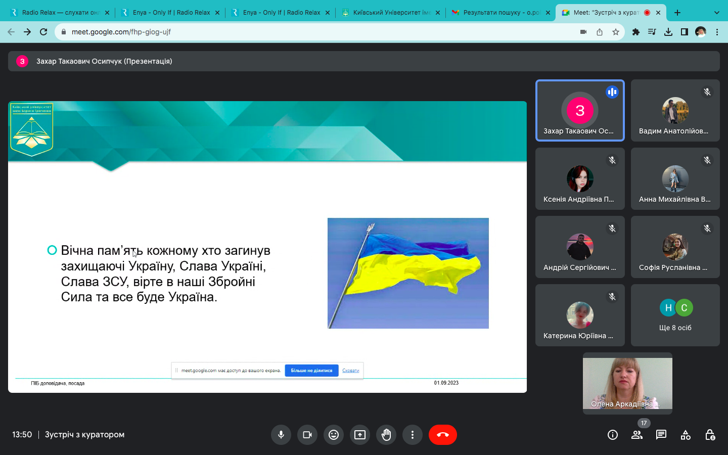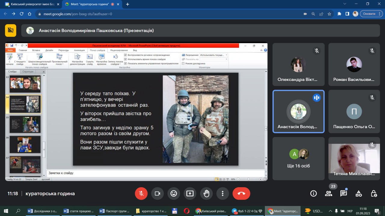 01 вересня 2023 року, в День знань, студенти Факультету української філології, культури і мистецтва Київського університету імені Бориса Грінченка відвідали організовані наставниками кураторські години на тему «Пам’ять про подвиг українського Воїна». Так студентська молодь вшанувала пам’ять захисників, які віддали життя за Українську Державу і наше майбутнє.