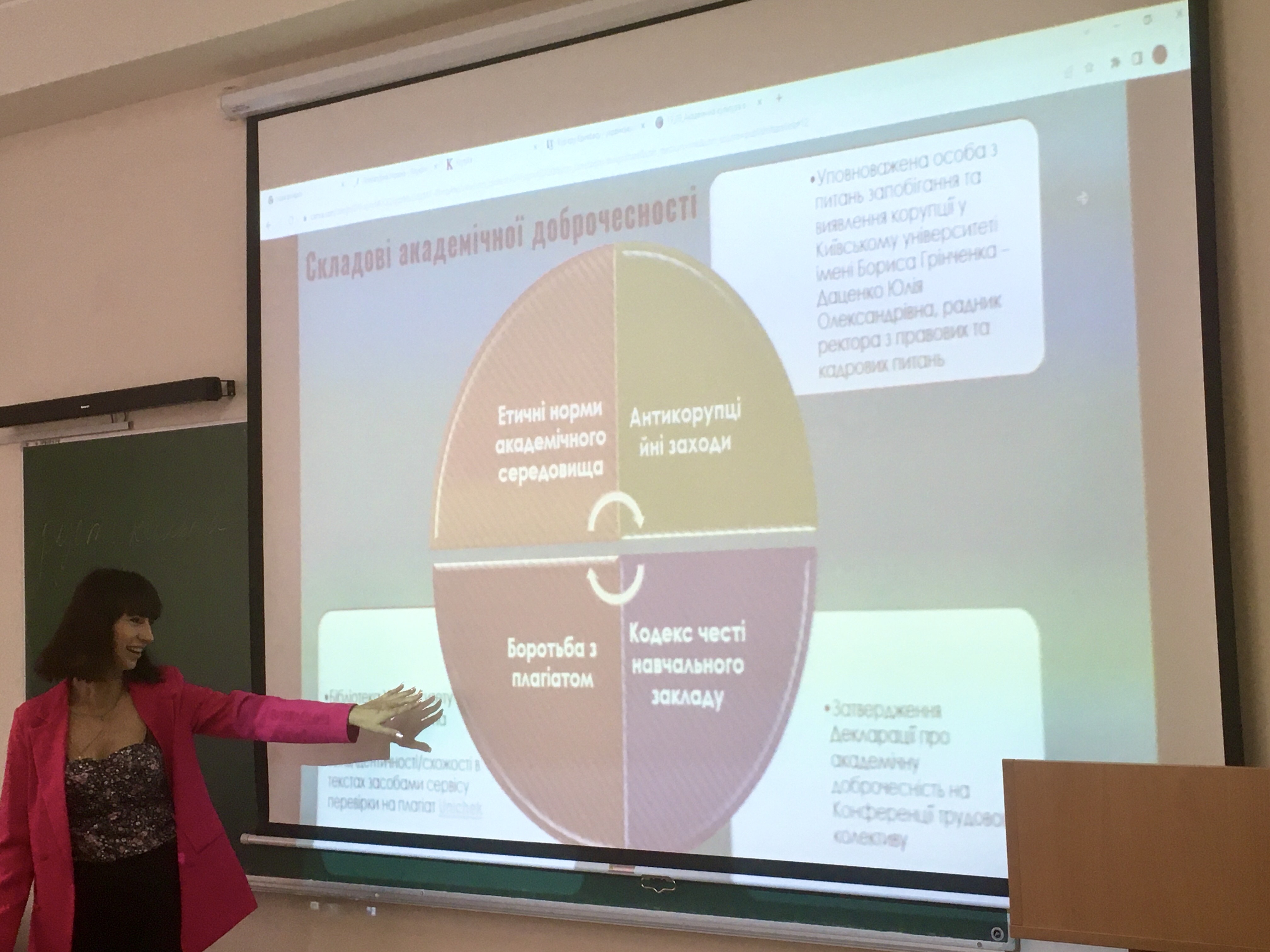 Під час заходу студенти І курсу дізналися про сутність і значення академічної доброчесності в освітньому просторі, ознайомилися з особливостями дотримання принципів академічної доброчесності для забезпечення якісної навчальної й науково-дослідницької діяльності.
