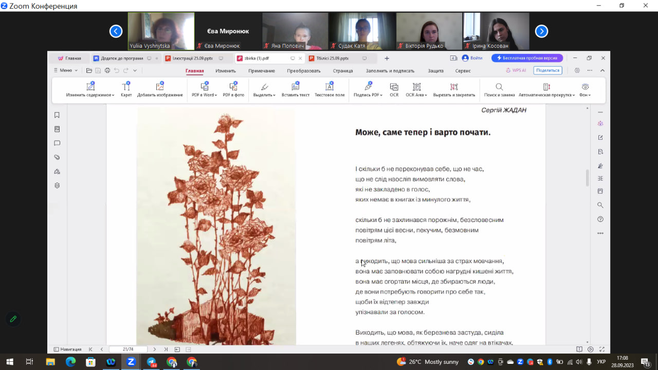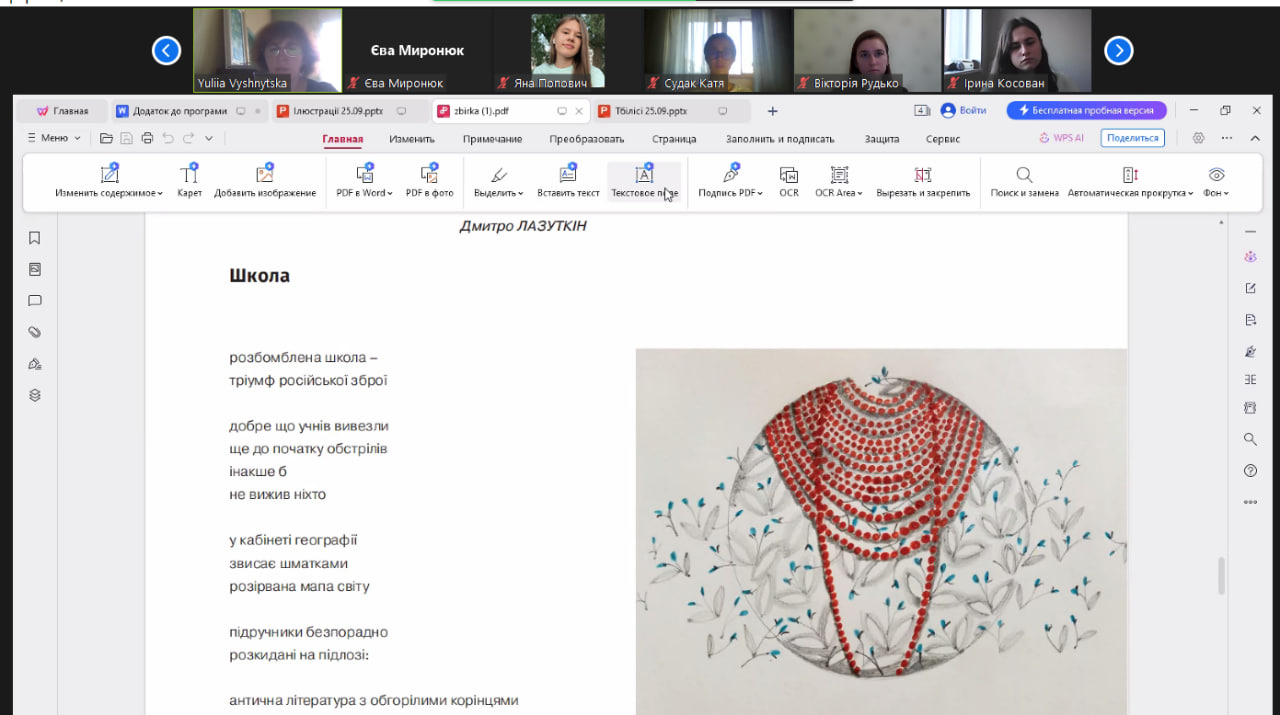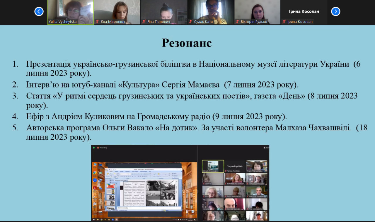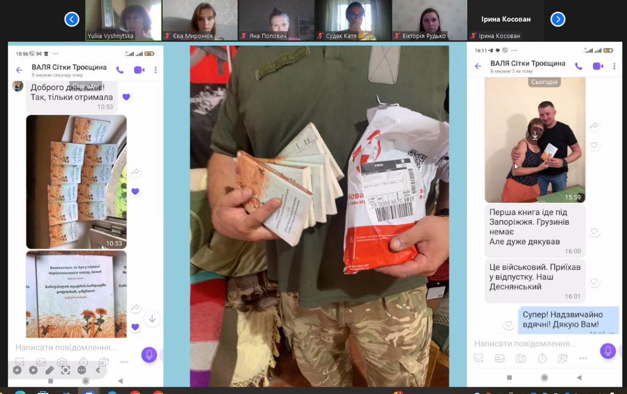 - провели презентацію книжки-білінгви українсько-грузинської мілітарної поезії «Виявляється, Ти був у підвалі Маріупольського театру, Боже!» (модератор – Юлія Вишницька, кафедра світової літератури);