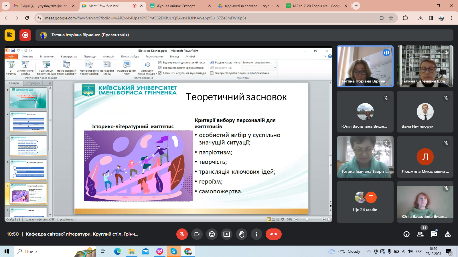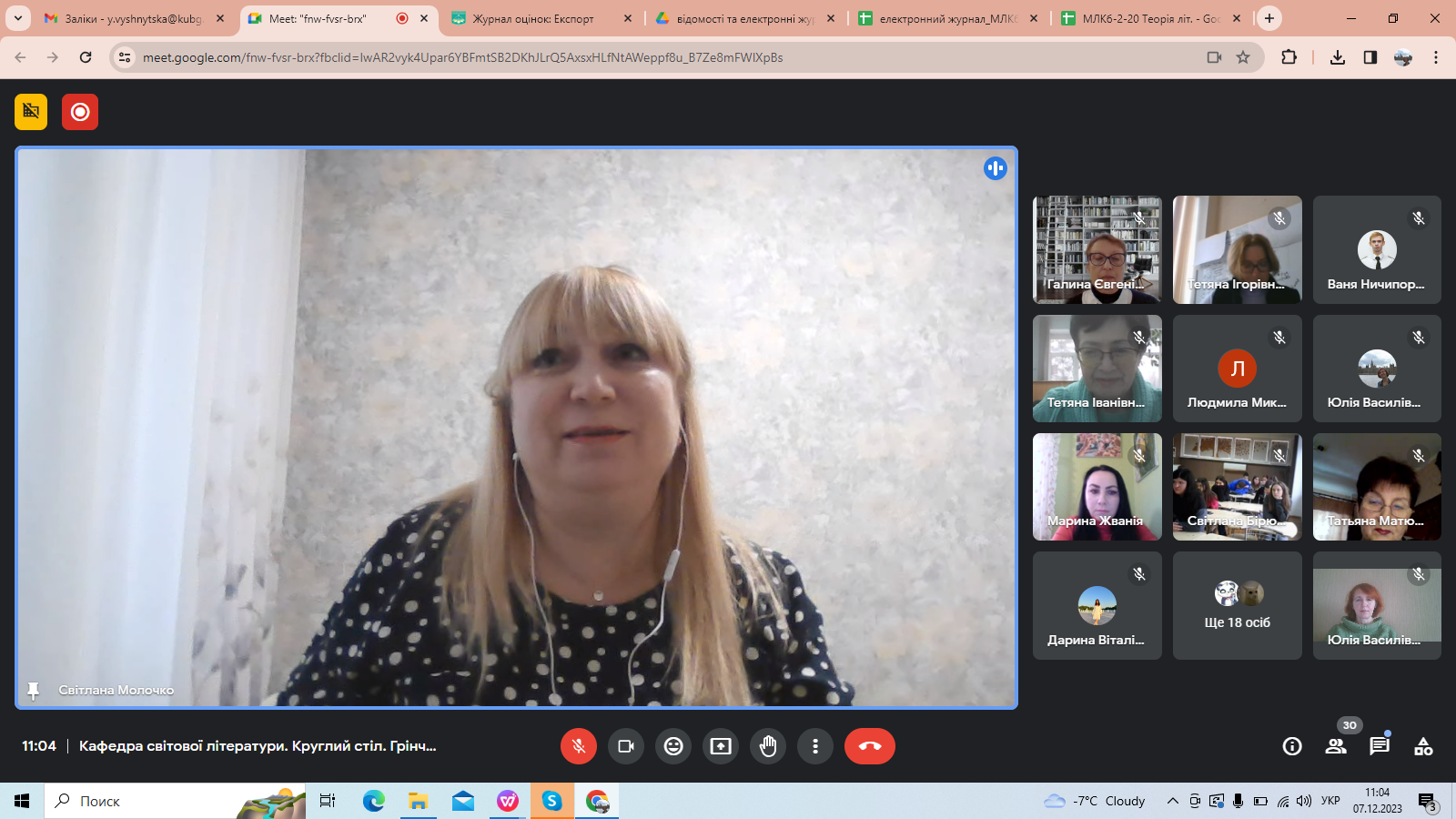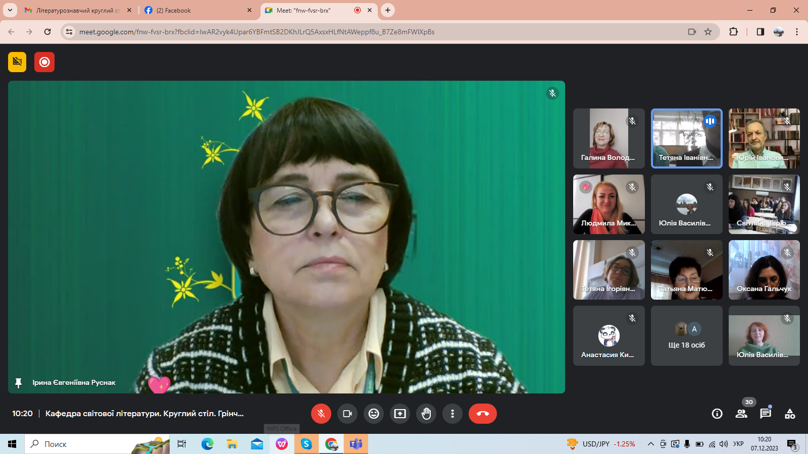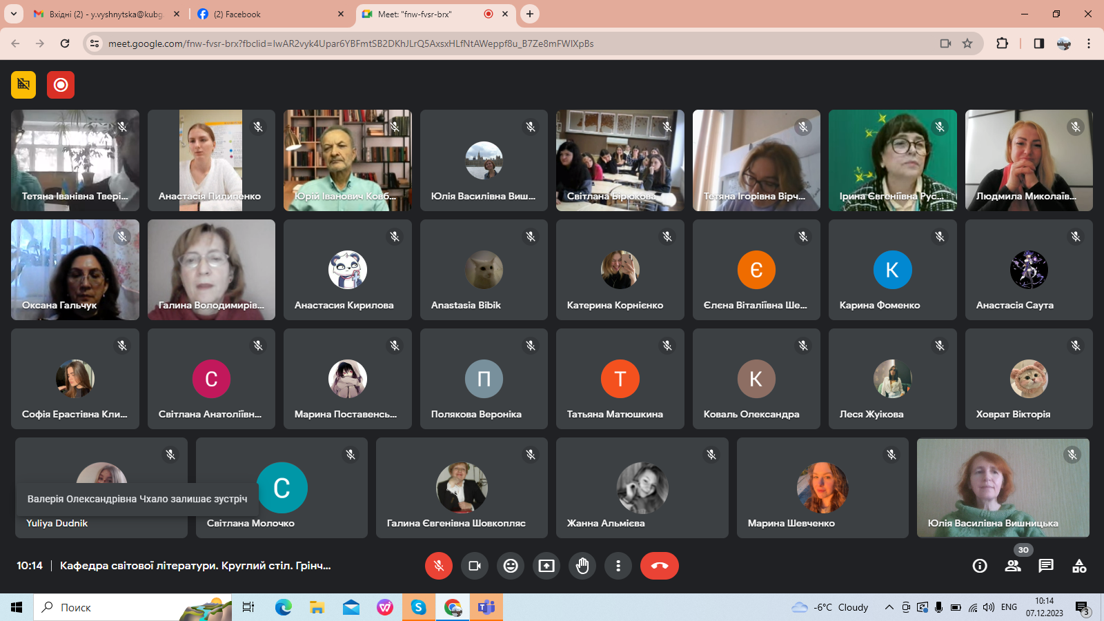 7 грудня 2023 року на Факультеті української філології, культури і мистецтва в межах Грінченківської декади, присвяченої 160-річчю з дня народження Бориса Грінченка, відбувся Всеукраїнський літературознавчий круглий стіл (з міжнародною участю) «Грінченко-енциклопедист». З вітальним словом до присутніх звернулася Ірина Руснак, декан факультету, професор, доктор філологічних наук. Привітали учасників заходу Людмила Овсієнко, заступник декана з наукової роботи, професор, доктор педагогічних наук; Юрій Ковбасенко, президент Української асоціації викладачів зарубіжної літератури, професор, кандидат філологічних наук, заслужений працівник освіти; Галина Бітківська, завідувач кафедри світової літератури, доктор філологічних наук, доцент.