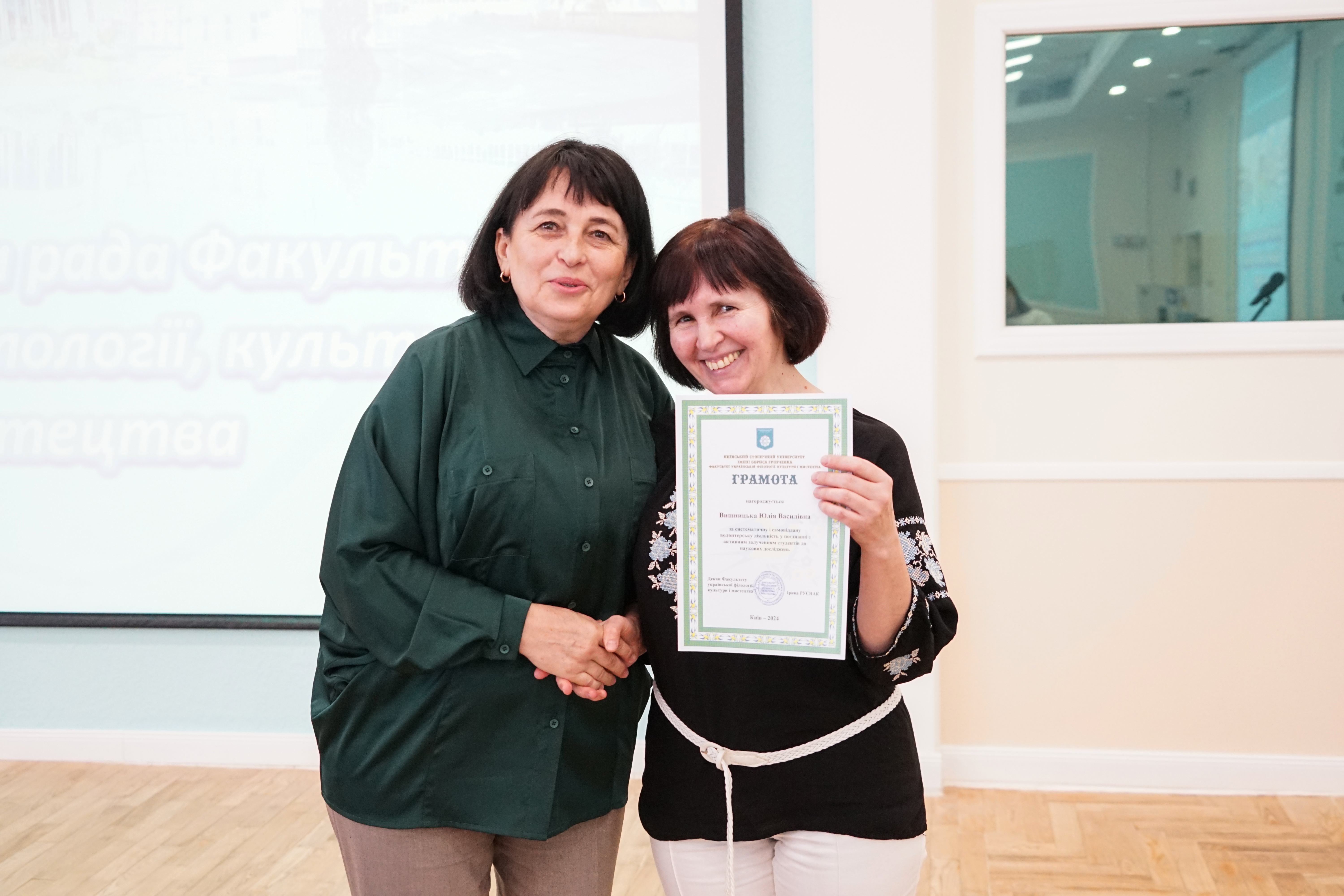 Відзначаючи День Факультету української філології, культури і мистецтва, підтримуючи прагнення вдосконалюватися, рухатися вперед, долати перешкоди, досягати успіхів оголосили грамоти і подяки присутнім науковим, науково-педагогічним, педагогічним представникам Факультету: Ірині Руснак, Юлії Вишницькій, Оксані Гальчук, Юрію Ковбасенку, Тетяні Тверітіновій, Сніжані Жигун, Олені Бондаревій, Тетяні Вірченко, Наталії Блохіній, Світлані Євтушенко, Руслані Новіковій, Євгенові Малюку, Ігореві Стамболу, Аллі Мажарі, Марії Макаровій, Денисові Вітковському, Тетяні Видайчук, Олександрові Стишову, Валентині Заєць, Тетяні Вінтонів, Раїсі Дружененко, Наталії Лахно, Ірині Саєвич, Марії Бойко, Людмилі Овсієнко, Світлані Горобець, Тетяні Саврасовій-В’юн, Марині Бойко, Юлії Потарікіній, Оксані Коваль.