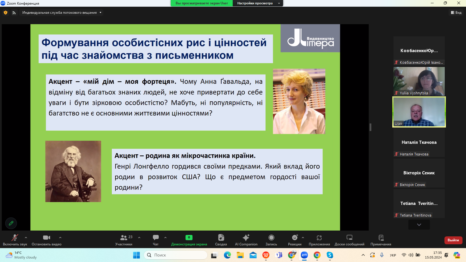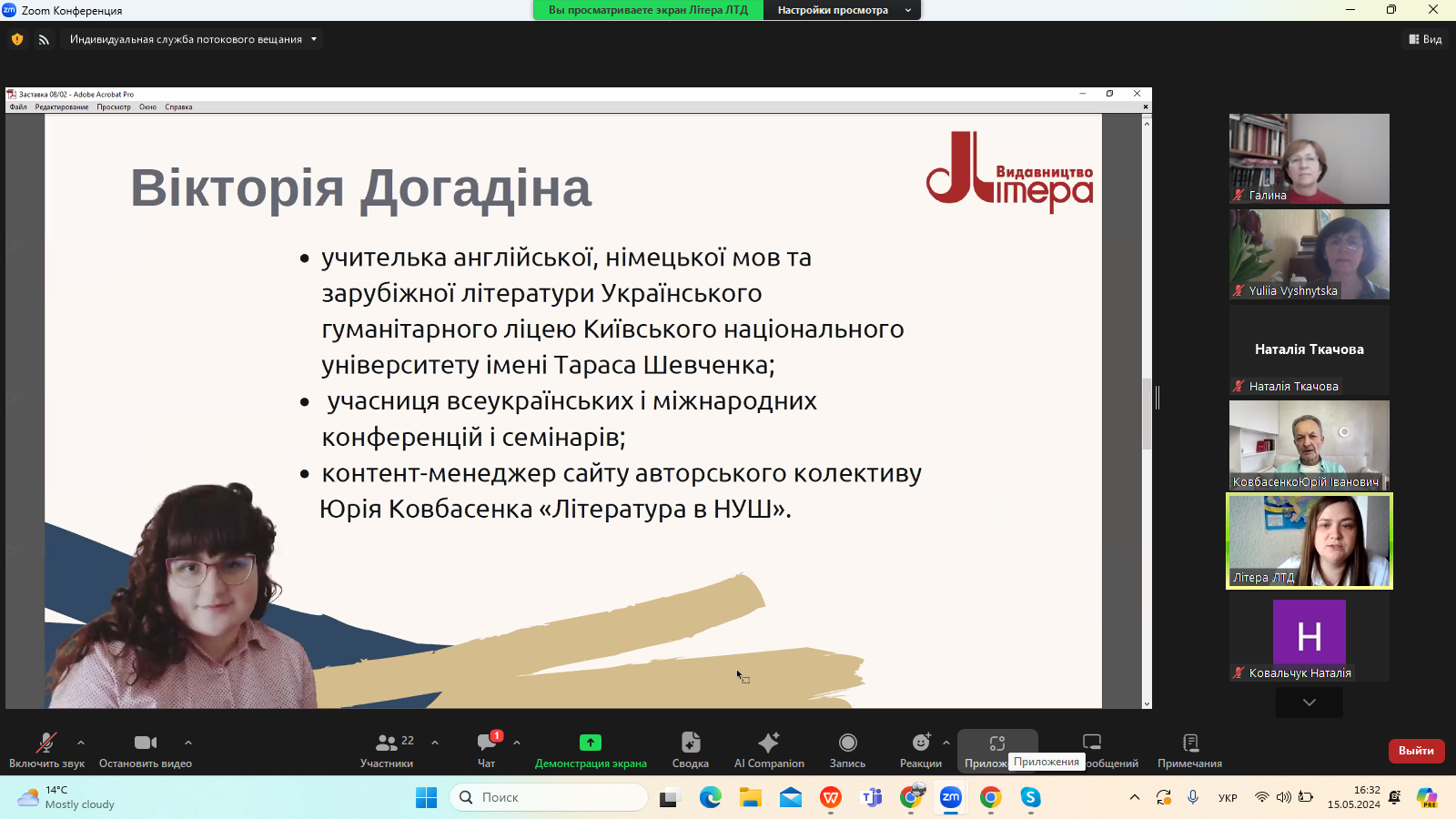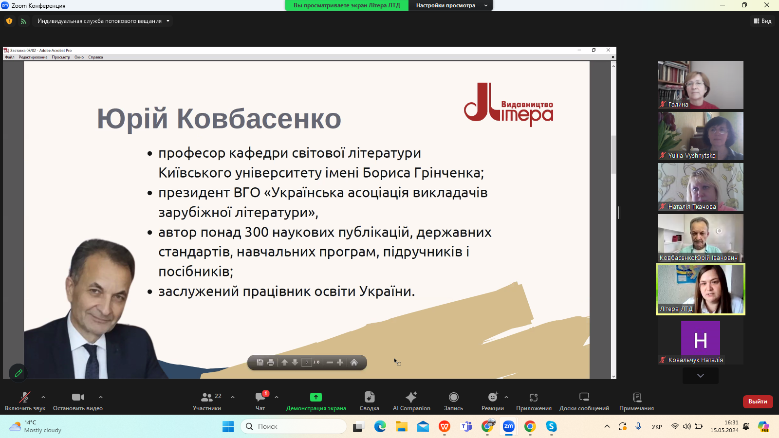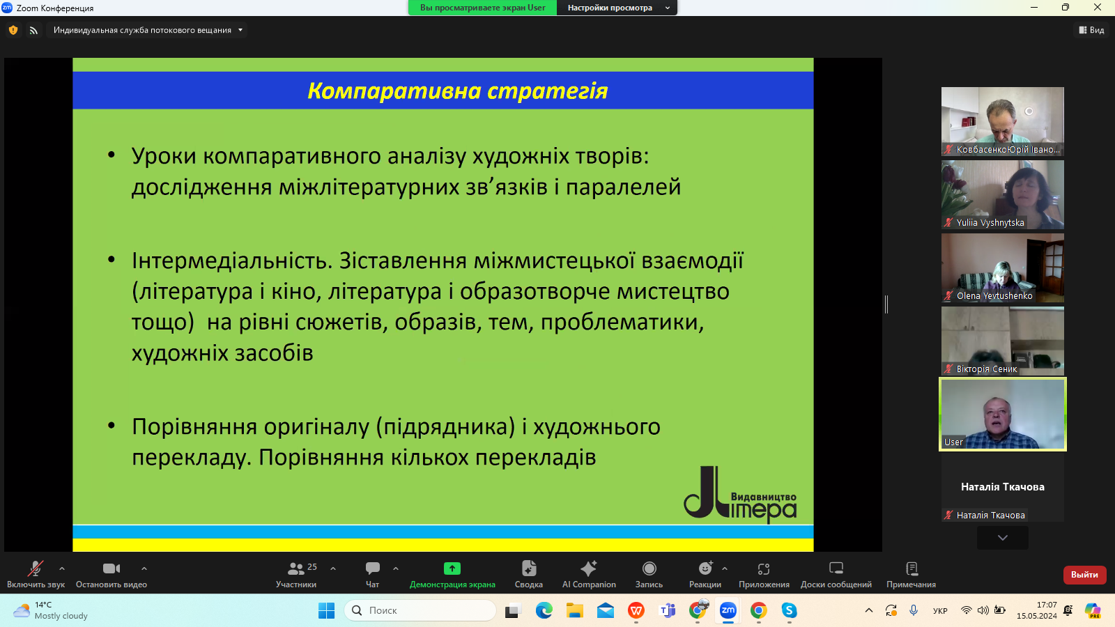 15 травня 2024 року в межах Фестивалю науки – 2024 на платформі видавництва «Літера ЛТД» відбувся Всеукраїнський вебінар «Нові стратегії літературної освіти в Україні», на якому розглянули питання постколоніального й аксіологічного виміру сучасної української гуманітаристики.