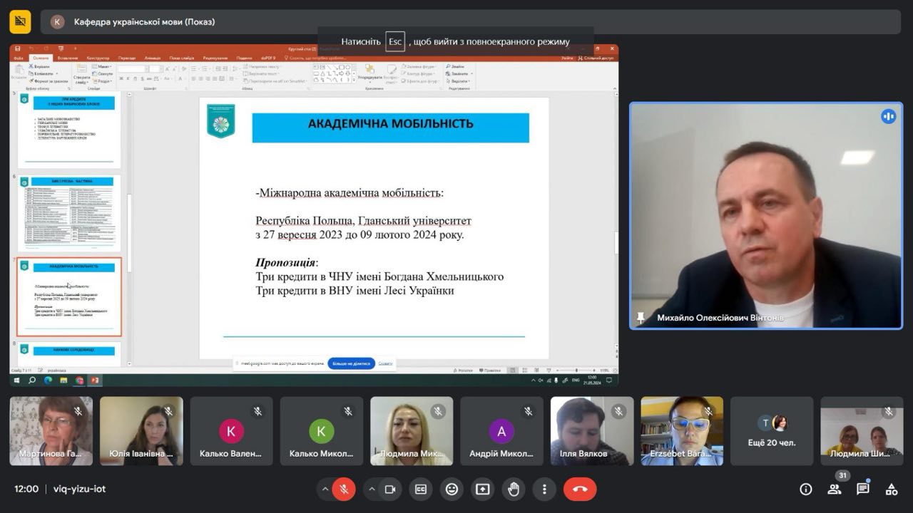 21 травня 2024 р. кафедра української мови Факультету української філології, культури і мистецтва Київського столичного університету імені Бориса Грінченка разом із Черкаським національним університетом імені Богдана Хмельницького, Волинським національним університетом імені Лесі Українки, Закарпатським угорським інститутом імені Ф. Ракоці ІІ, Сеґедським університетом (Угорщина), Будапештським університетом імені Лоранда Етвеша (Угорщина), Бакинським слов’янським університетом (Азербайджан) провела науково-теоретичний семінар для аспірантів.