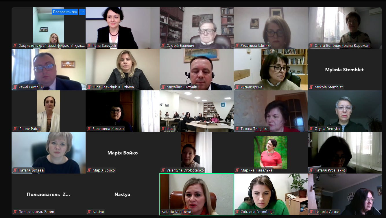 14 листопада 2024 року у Київському столичному університеті імені Бориса Грінченка відбулася наукова онлайн-конференція «Моделі мовного простору України і Європи», ініційована кафедрою української мови Факультету української філології, культури і мистецтва. Відкриваючи конференцію, завідувач кафедри української мови Михайло Вінтонів наголосив на значному представницькому складі учасників з наукових і освітніх установ України і зарубіжжя. З вітальним словом до наукового товариства звернулись проректор з наукової роботи, голова Вченої ради Університету Грінченка Наталія Віннікова і декан Факультету української філології, культури і мистецтва Ірина Руснак.