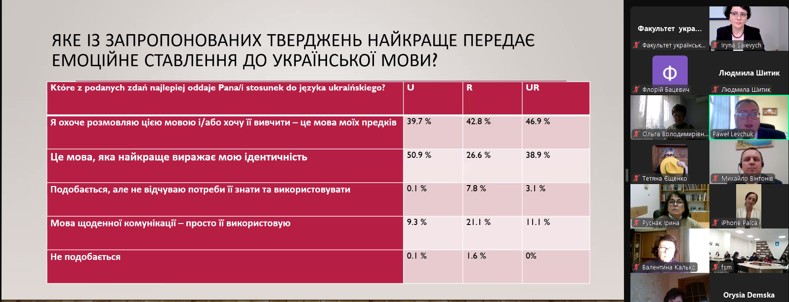 На пленарному засіданні були порушені питання мови як мірила національної ідентичності. Так Павел Левчук, ад’юнкт відділу мовознавства Інституту славістики Польської академії наук, представляючи дослідження «Мовна поведінка українців у Польщі на початку повномасштабного вторгнення», наголосив на зміні вартісних характеристик і статусності східнослов’янських мов у Європі; Орися Демська, професор Національної академії СБУ, висвітлила важливість аспектів мовної політики як чинника державної безпеки, схарактеризувала роль України у формуванні стабільного мовного простору Східної Європи.