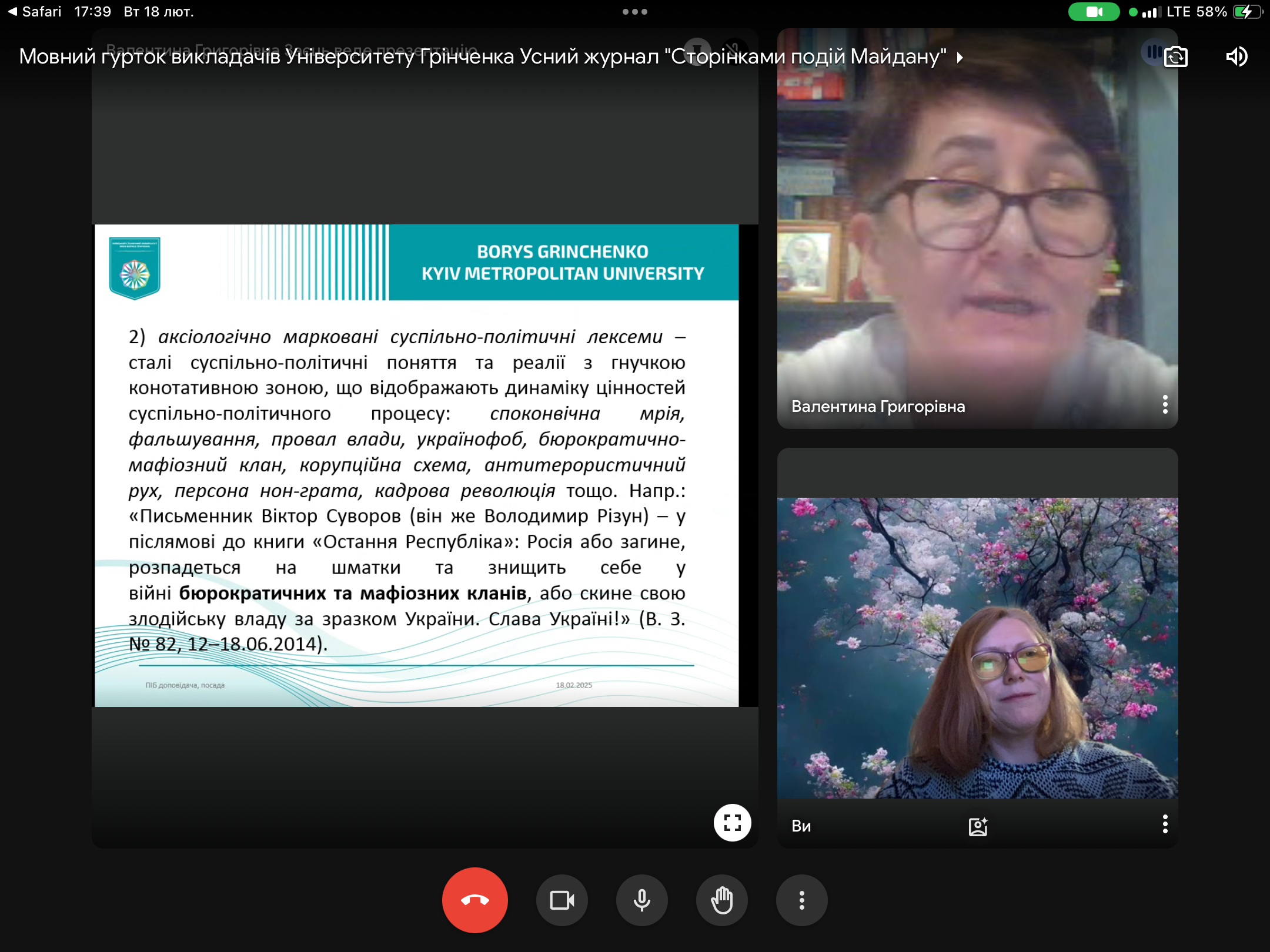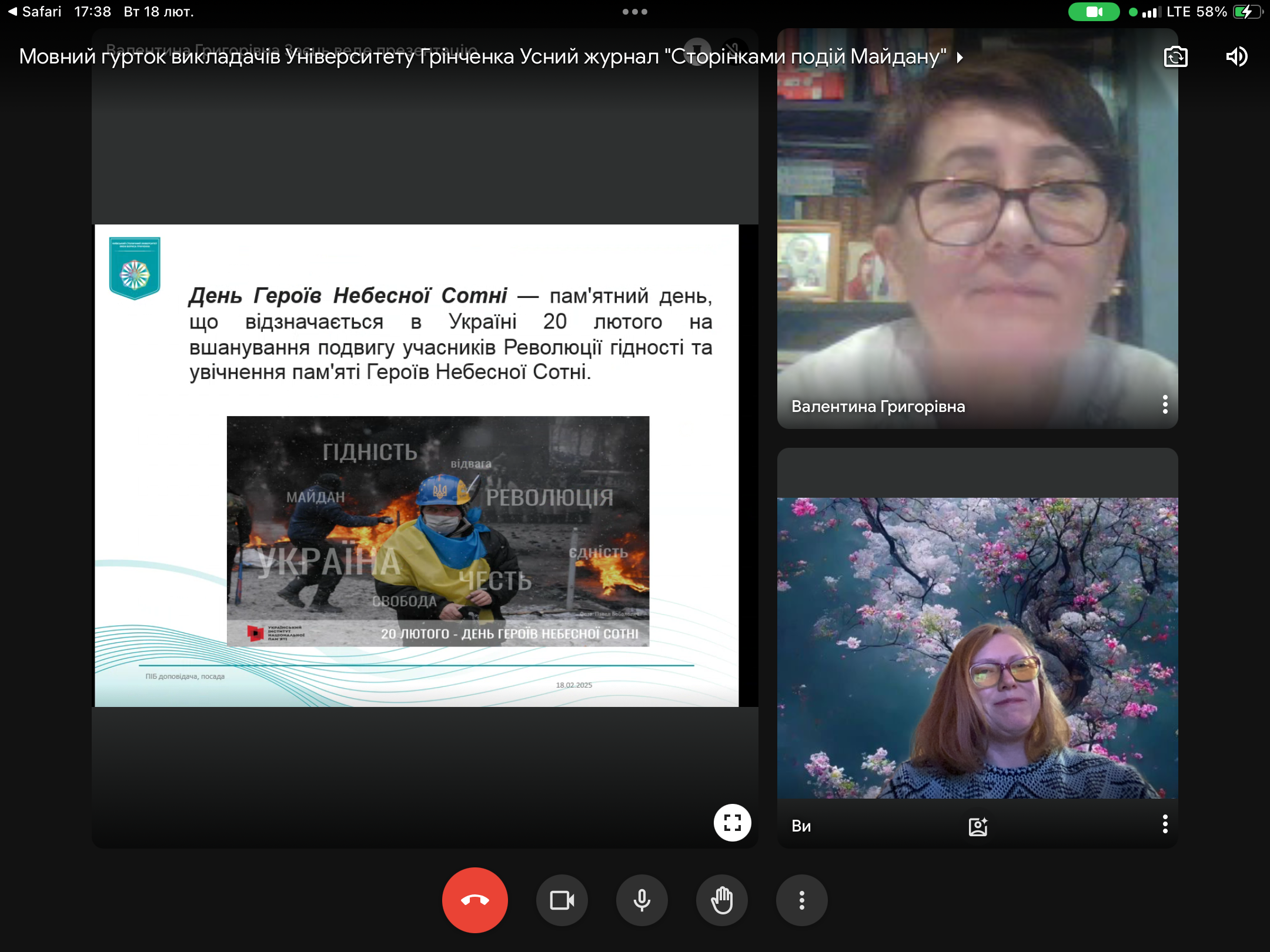 З нагоди цього дня було проведене тематичне засідання мовного гуртка (керівник - Валентина Григорівна Заєць, доцент кафедри української мови, кандидат педагогічних наук). На зустрічі учасники слухали усний журнал "Сторінками подій Майдану", розглядали й аналізували лексику, що зафіксована у словнику учасників протистояння Революції Гідности.