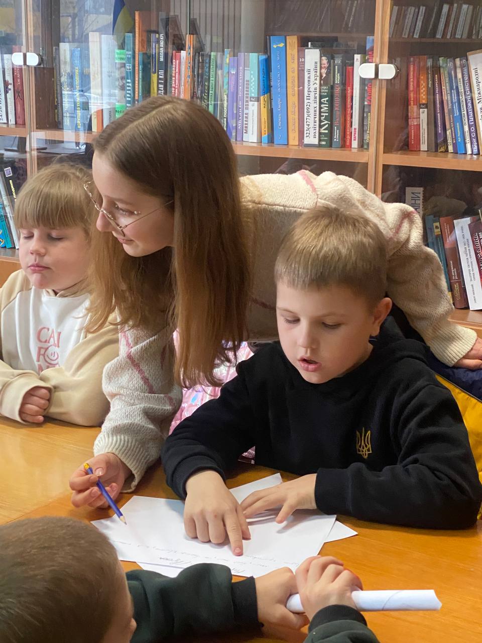 Заняття розпочалося з доброзичливого вступного слова, після чого діти поринули у світ мовних головоломок, розшифровуючи мовні головоломки та відчуваючи себе справжніми лінгвістичними детективами. Наступним етапом стала візуалізація абстрактних понять у грі «Малюнковий диктант», де учасники малювали свої уявлення про такі слова, як «щастя» та «мрія». Це дало змогу учням поділитися своїми думками й емоціями через образи. У грі «Хто більше?» юні мовознавці продемонстрували свою кмітливість та швидкість мислення, змагаючись у командах за кількість слів на задану літеру. На завершення інтерактиву школярі спробували свої сили у складанні речень із запропонованих слів, що сприяло розвитку їхнього логічного та креативного мислення. Зустріч завершилася щирими емоціями, обміном враженнями та заохоченням усіх учасників за активну участь.