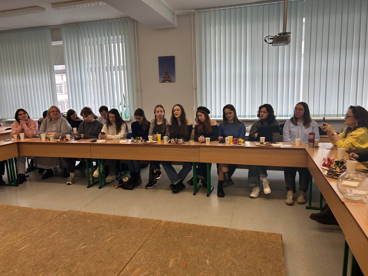 Замість звичних лекцій панувала тепла, невимушена атмосфера розмови. За чашкою чаю та смаколиками викладачі й студенти ділилися думками про наболіле, обговорювали важливі питання навчання, професійного зростання та нові ідеї для спільних проєктів. Цікавим моментом стало використання метафоричних карт, що допомогло учасникам глибше зрозуміти себе та свої прагнення.