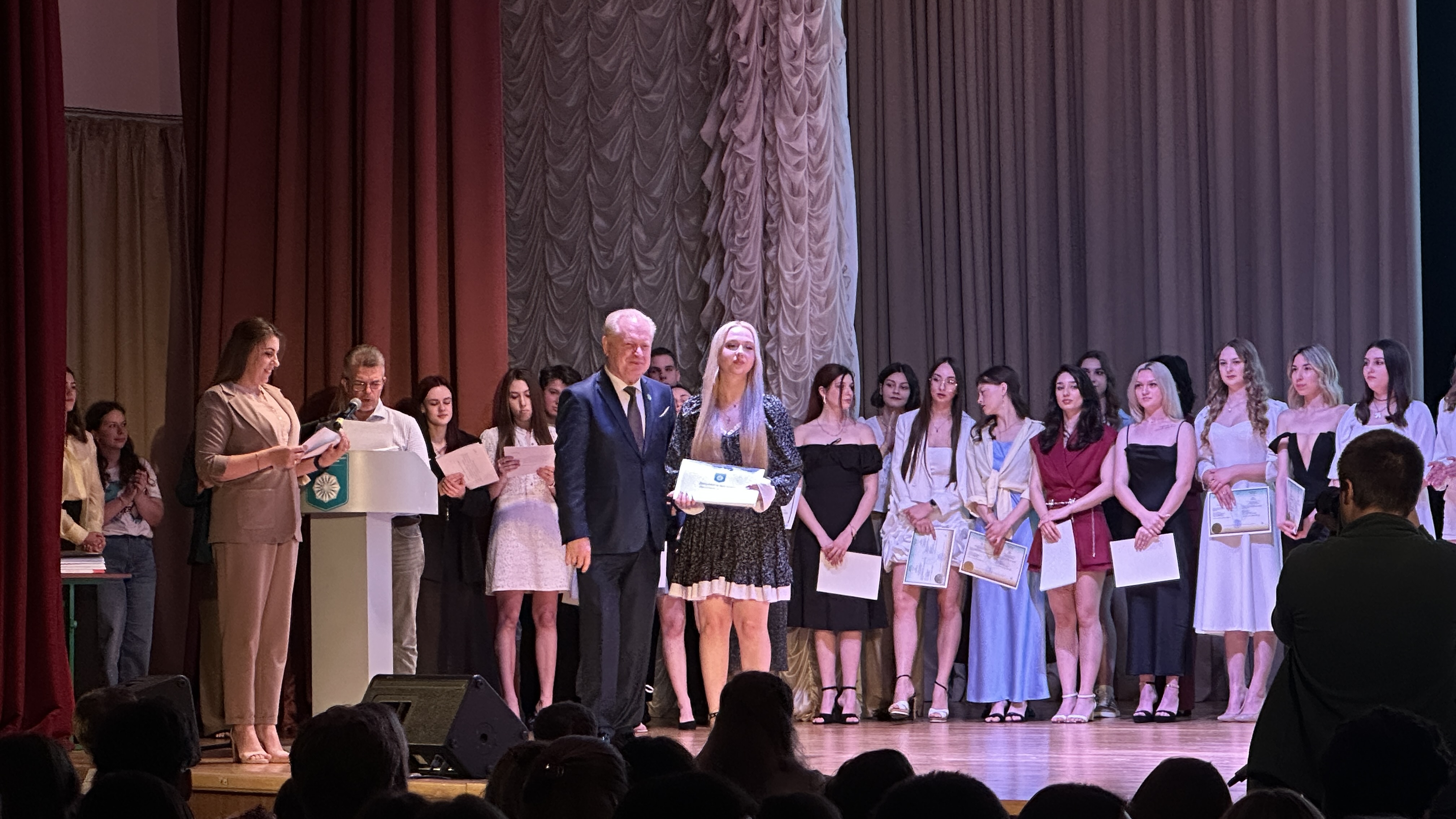 Під час урочистостей випускників привітали в.о. ректор Університету, Олександр Турунцев, декан Факультету, доктор філологічних наук, професор Ірина Руснак.
