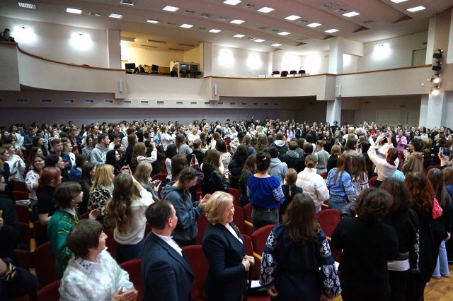 На хвилі емоційного піднесення академічна спільнота Університету разом із Богданом Бенюком долучилася до написання радіодиктанту національної єдности. «Сьогодні ми пишемо диктант – ми промовляємо слова, що єднають нас. У цю мить уся Україна говорить однією мовою – мовою серця», – зазначив відомий актор, надихаючи присутніх.