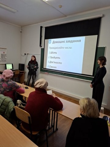 Протягом кількох місяців студенти другого курсу спеціальності «Філологія. Українська мова і література» Дуда Каріна, Єремеєва Юлія, Варенцова Марія, Граб Єлізавета, Печерна Катерина, Костюк Каріна, Ярмак Анна, Пашкевич Дарія під керівництвом доцента кафедри української мови Наталі Русаченко проводили заняття для людей 55+, де слухачі, об'єднані щирим бажанням вивчати та чути українське слово, не лише поглиблювали знання з мови, але й розглядали актуальні та цікаві теми, що стосуються традицій, культури та сьогодення українців.