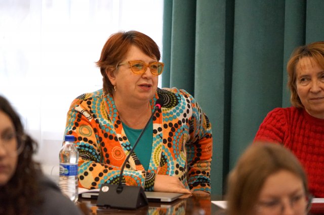Оксана Гальчук, професор кафедри світової літератури, доктор філологічних наук, професор, виголосила доповідь на тему: «Досвід “Дон Кіхота” Бориса Грінченка в українській поезії ХХ ст.».