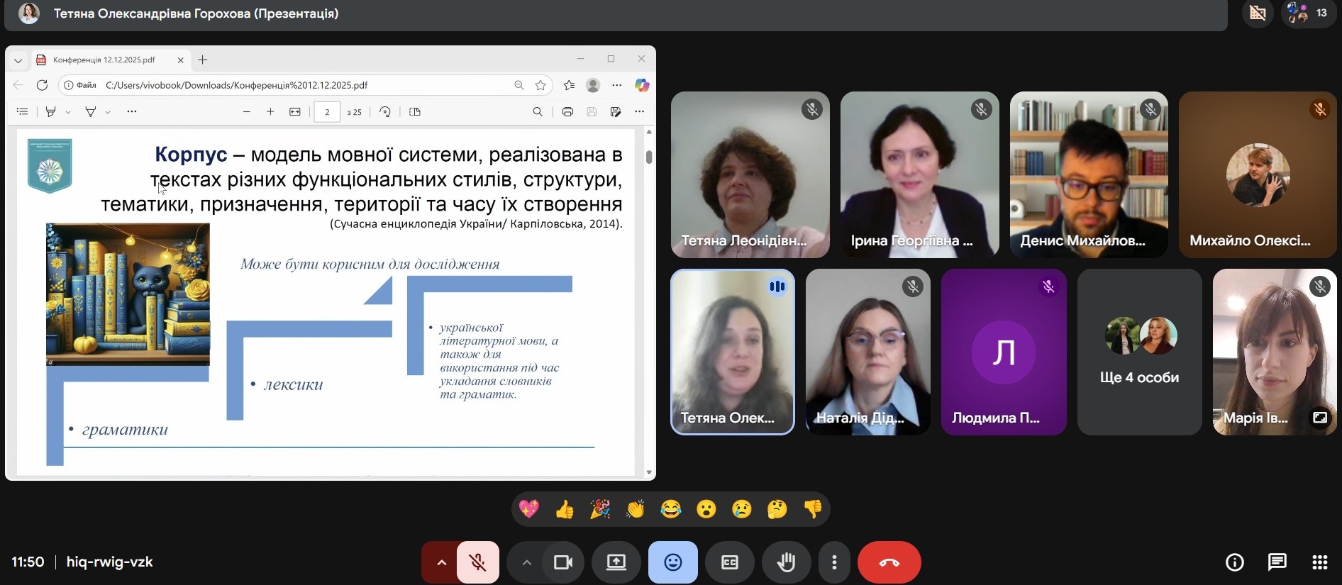 Традиційно фінал семестру на Факультеті української філології, культури і мистецтва збігається з підбиттям підсумків наукових пошуків студентів, аспірантів, докторантів і молодих учених. 12 грудня 2025 року учасники з десяти закладів освіти України презентували до обговорення свої доповіді на вже десятій онлайн-конференції «Актуальні проблеми літературознавства і мовознавства».