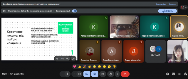 Валентина Заєць, доцент кафедри української мови, реалізувала засідання гуртка-студії «Лінгвістика українськомовного тексту», під час якого студенти поглибили знання про структуру та функціонування тексту в сучасному мовному просторі.