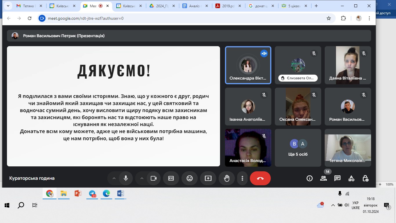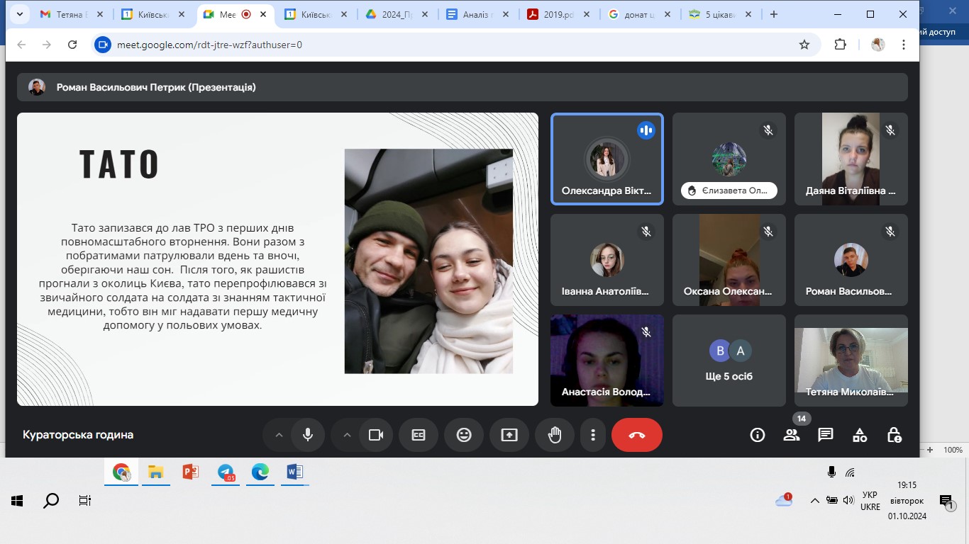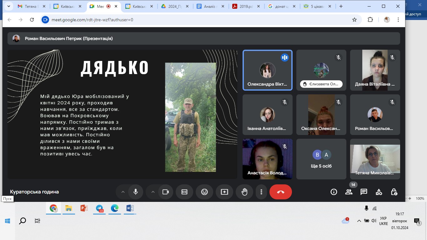 01 жовтня 2024 року в День козацтва, День Захисників і Захисниць України студенти групи УМЛ-1-22-4.0д (куратор Тетяна Вінтонів) Факультету української філології, культури і мистецтва Київського столичного університету імені Бориса Грінченка здійснили реалізацію проєкту «Історії наших Захисників».