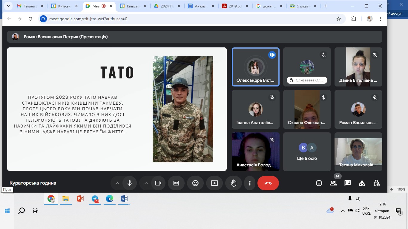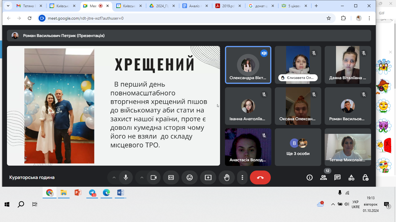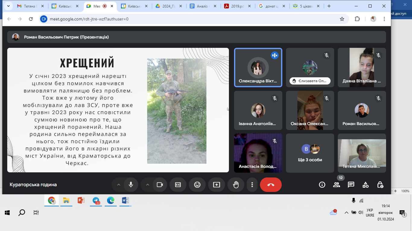 01 жовтня 2024 року в День козацтва, День Захисників і Захисниць України студенти групи УМЛ-1-22-4.0д (куратор Тетяна Вінтонів) Факультету української філології, культури і мистецтва Київського столичного університету імені Бориса Грінченка здійснили реалізацію проєкту «Історії наших Захисників».