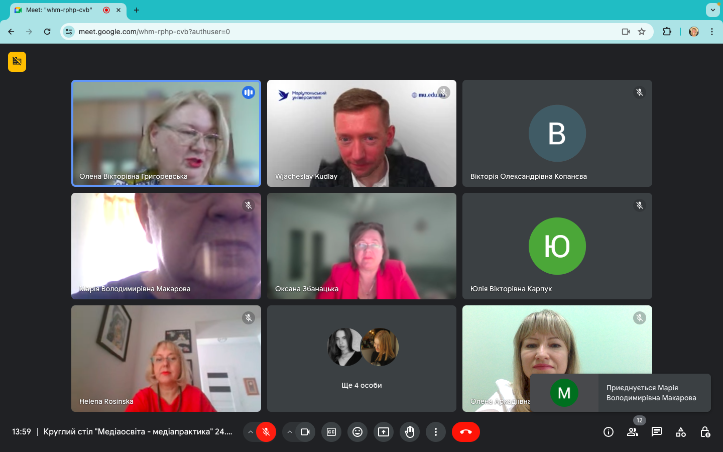 З вітальним словом до учасників зустрічі звернулися Олена Політова, завідувач кафедри інформаційних комунікацій Київського столичного університету імені Бориса Грінченка, і В’ячеслав Кудлай, завідувач кафедри інформаційної діяльності Маріупольського державного університету: