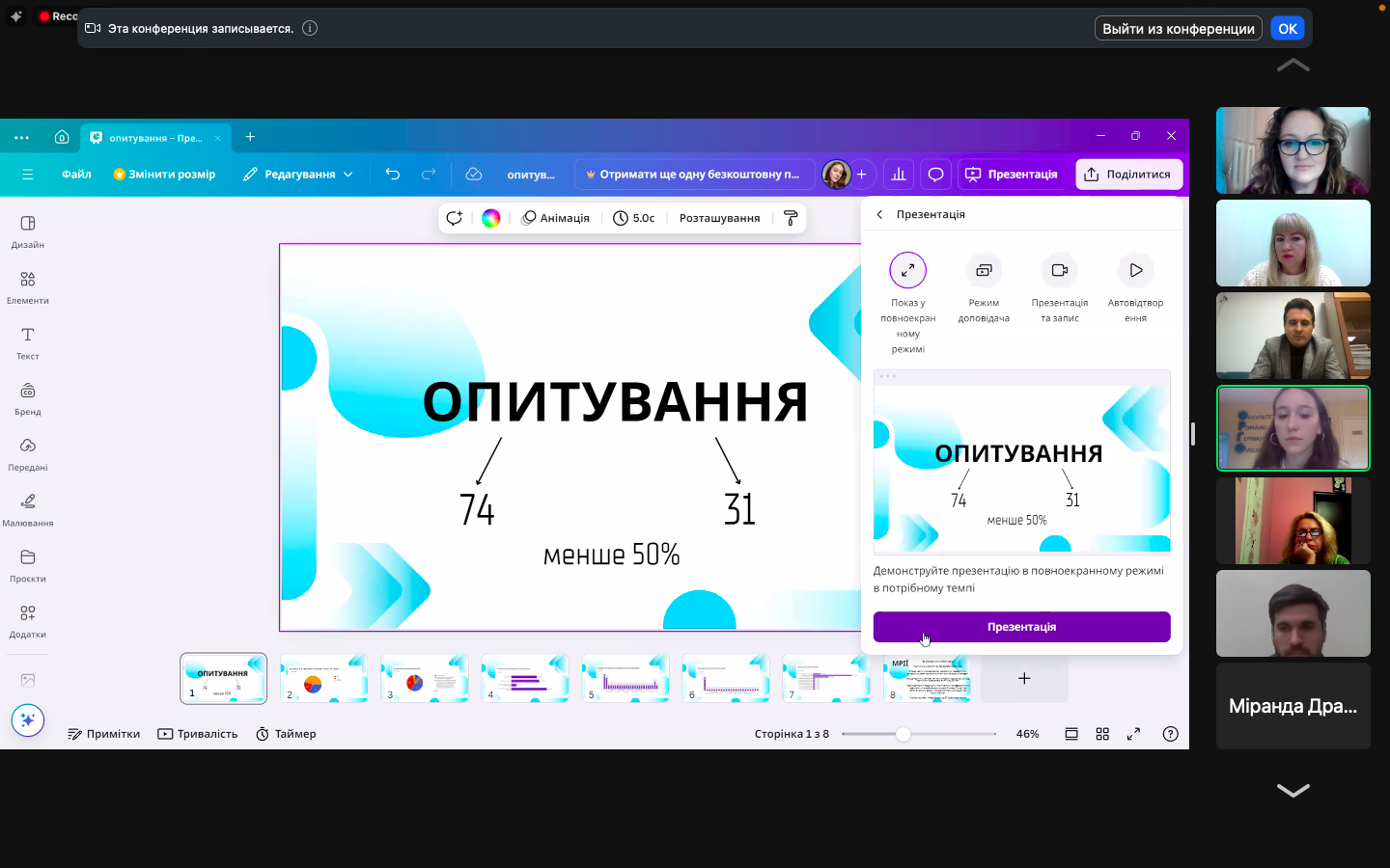 Завершував захід аудіовізуальний проєкт першокурсників Драганчук Міранди, Білявцева Данила, Кулик Анжеліни, тема якого – «Боротьба митців за українську мову та культуру».