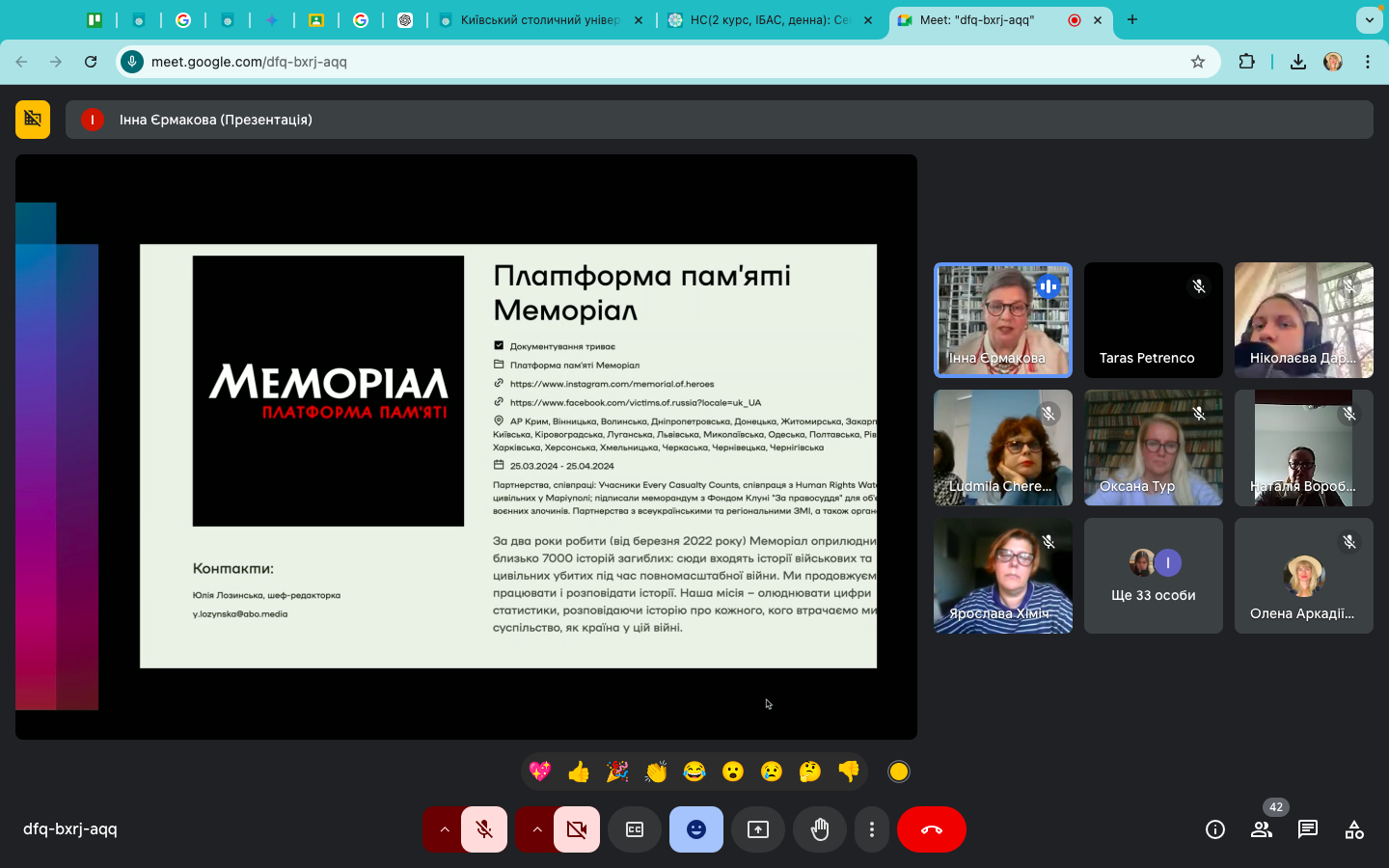 19 листопада 2024 року студенти групи ІБАС-1-23-4.0 разом із Оленою Політовою, завідувачем кафедри інформаційних комунікацій, долучилися до лекції Єрмакової Інни, наукової співробітниці Національного музею історії України у Другій світовій війні на тему «Найбільш документована війна. Музейний вимір».