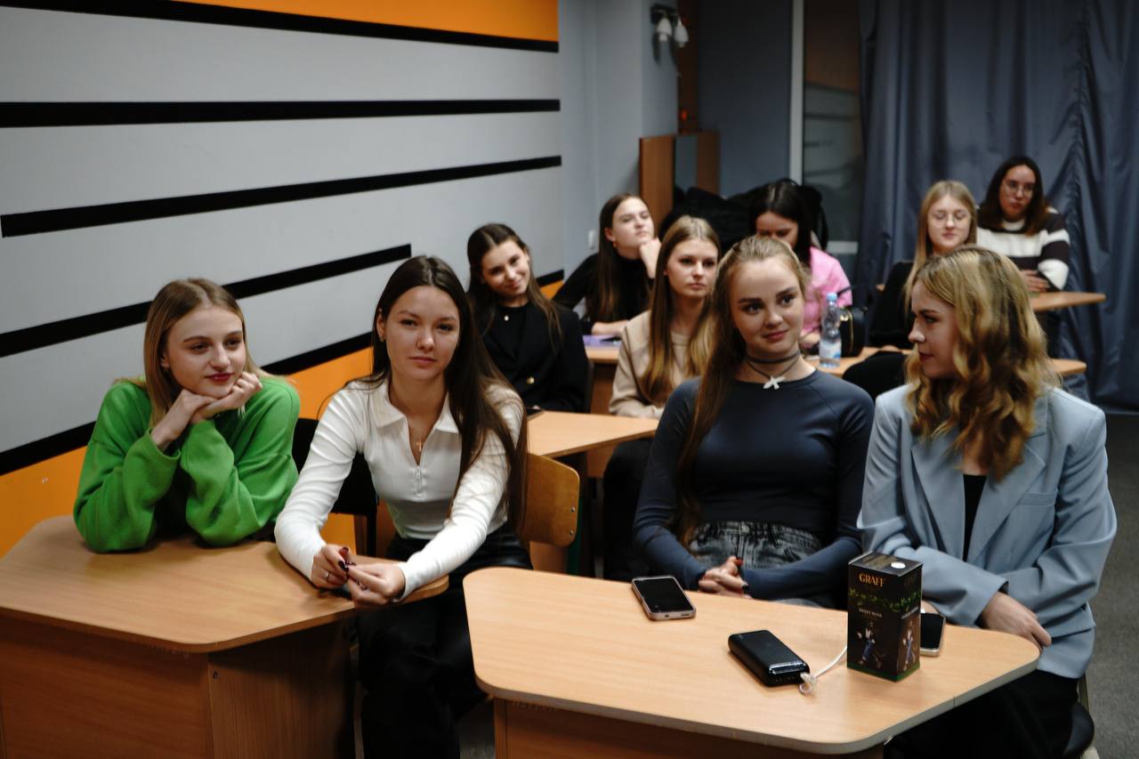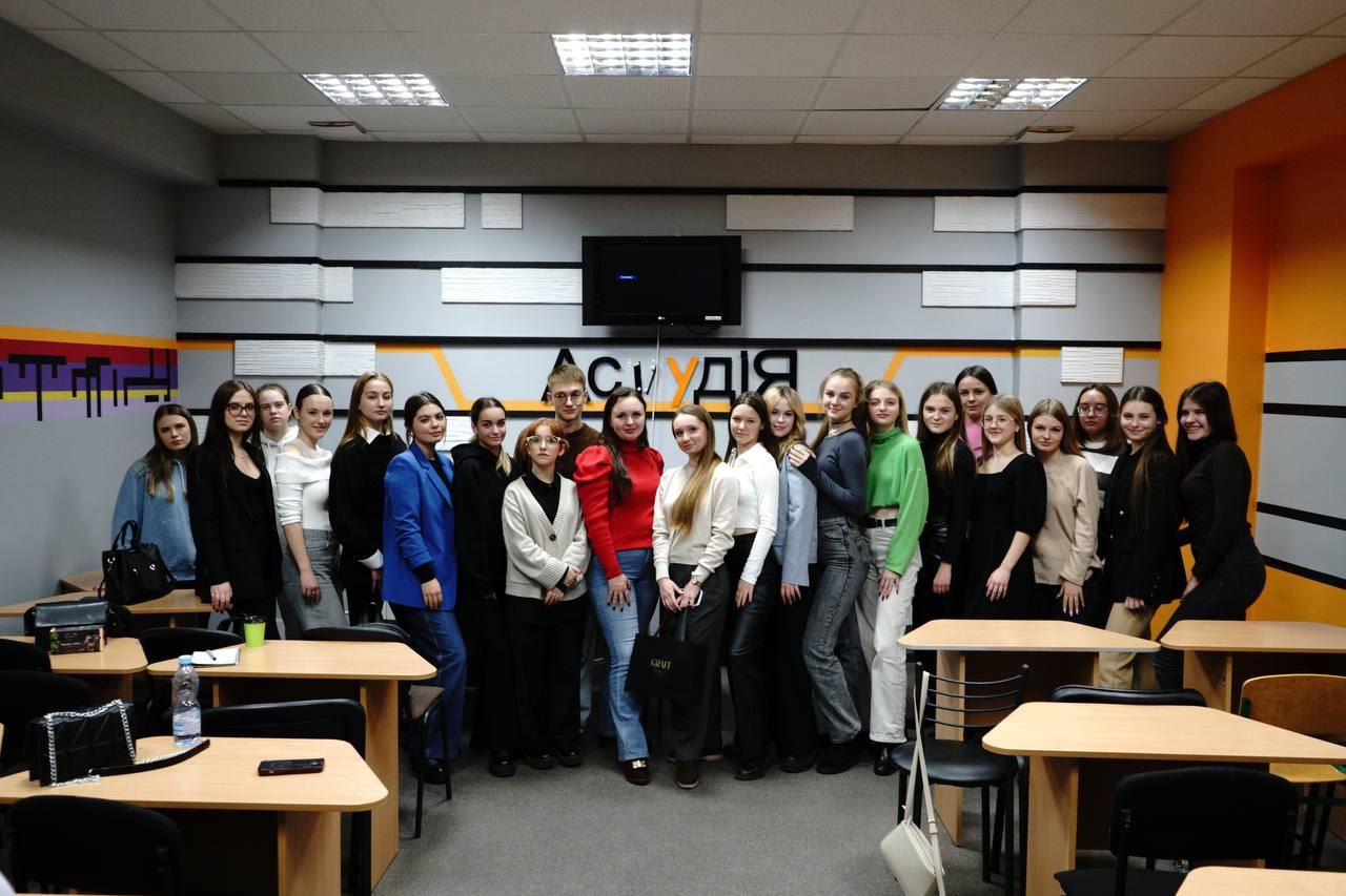 12 листопада 2024 року в рамках дисципліни «Сучасні інформаційні програми на телебаченні» викладач кафедри інформаційних комунікацій Черкасець М.С. разом із журналісткою-телеведучою програм на телеканалі “Інтер” та PR-директоркою корпорації «Біосфера» Анастасією Кошубою провела практичні заняття зі студентами 2 курсу ОПП «Ведучий телевізійних програм» в Астудія. Анастасія поділилась під час зустрічі своїм медійним досвідом: пояснила, у чому різниця новинного та проєктного формату на телебаченні, розповіла про часті факапи телевізійників на зйомках, а також розкрила тему суміжних напрямів у сферах PR і телебачення.