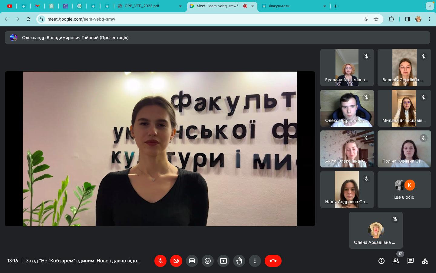 Студенти представили творчі роботи у вигляді презентацій, відеоробіт, інтерв'ю, в яких щиро намагалися розвінчати міфи про життя і творчість Тараса Шевченка. Цікаві й маловідомі факти, які молодь розкрила у своїх роботах розширили уявлення про видатного українця як простої і водночас геніальної та унікальної особистості. Під час зустрічі майбутні телеведучі яскраво продемонстрували свої професійні навички: роботу з камерою, чітку дикцію та вимову, акторську майстерність, а також вміння працювати в команді та емоційний інтелект. Щиро вдячні нашим талановитим студентам за їх творчість!