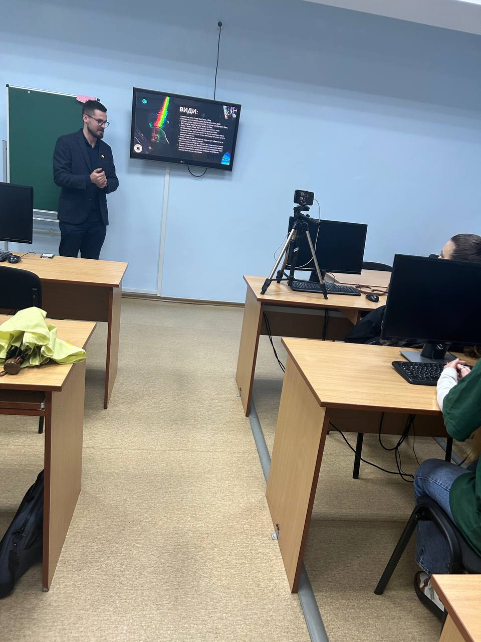 18 квітня 2024 року старший викладач кафедри інформаційних комунікацій Вітковський Д.І. провів відкрите лекційне заняття з дисципліни «Основи операторського мистецтва» на тему «Носії інформації та цифрові формати відеозапису» для студентів 3 курсу ОП Ведучий телевізійних програм.