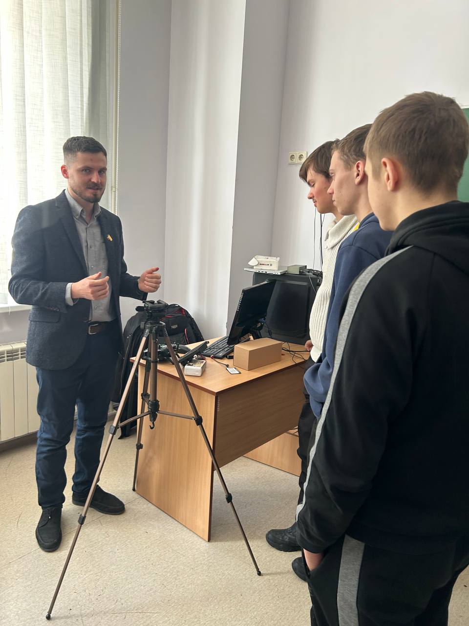Провів старший викладач кафедри, тренер Спецпідрозділу АРТАН, ГО «Повітряний простір», навчально-дослідницького центру БпЛА «Dragon Sky» Вітковський Д. І. Учасники дізналися про сучасні технології безпілотних літальних апаратів, їх застосування у мирному та воєнному житті. Старшокласники не лише слухали захопливу розповідь, а й мали можливість особисто потримати дрон у руках і спробувати ним керувати.