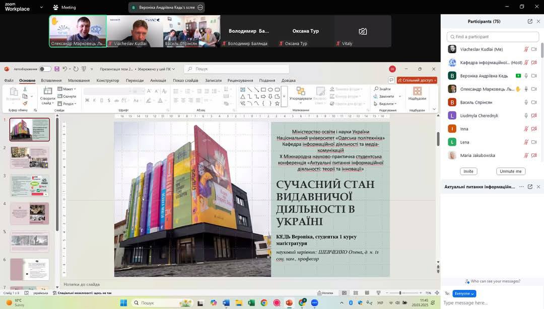 20 березня 2025 року студенти кафедри інформаційних комунікацій взяли участь у Х Міжнародній науково-практичній студентській конференції «Актуальні питання інформаційної діяльності: теорії та інновації», яка відбулася у Національному університеті «Одеська політехніка».