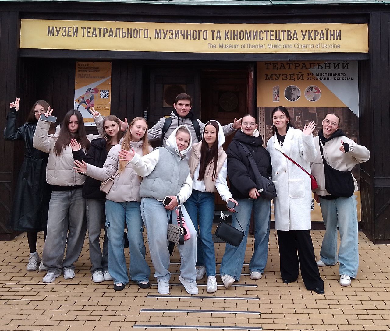 3 жовтня у рамках дисципліни «Акторська майстерність» студенти 1 курсу спеціальності «Аудіовізуальне мистецтво та медіавиробництво» відвідали Музей театрального, музичного та кіномистецтва України. Екскурсія відбулася за участі студентів 1 курсу ВТПб на чолі з доцентом кафедри Новиковою Русланою Артемівною в рамках діяльності гуртка «Мистецтво й артмедіа».