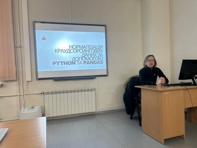 27 січня доцент Є. Ворожейкін провів майстер-клас «Нормалізація краудсорсингових даних за допомогою Python та Pandas». Учасники ознайомилися з основними принципами обробки великих масивів даних, методами очищення, структурування та уніфікації інформації. Було продемонстровано практичні інструменти роботи з бібліотекою Pandas, зокрема фільтрацію, групування, усунення дублікатів, приведення даних до єдиного формату. Заняття мало прикладний характер і показало можливості використання цифрових інструментів у науковій та освітній діяльності.