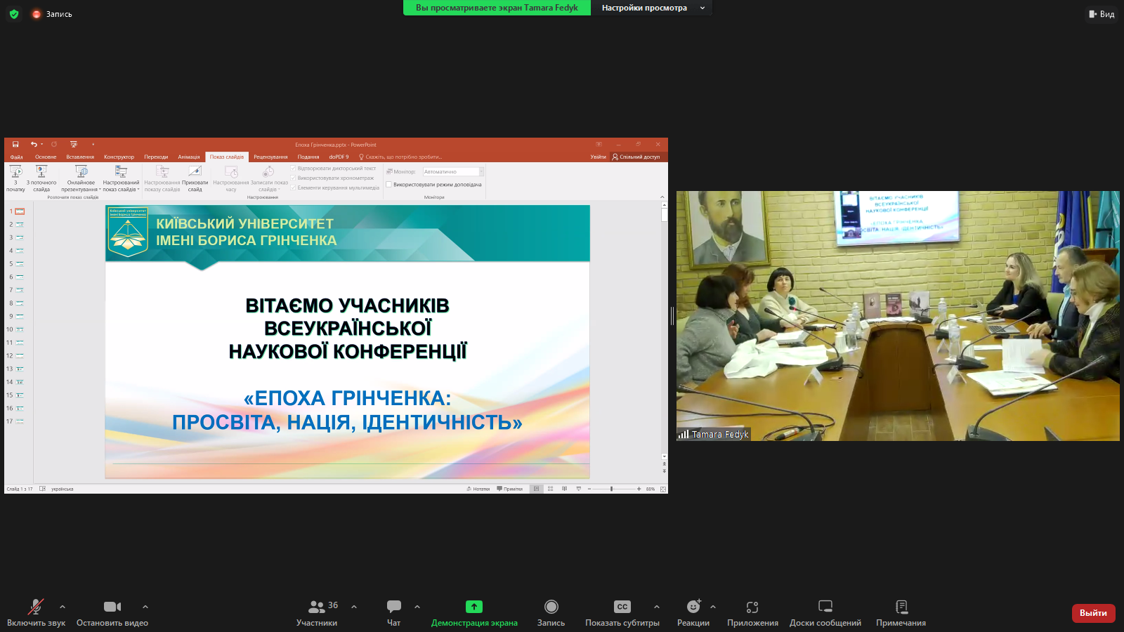 Вхоплені миттєвості виступів науковців можна роздивитися на світлинах-скрінах, а детальніше про загальноуніверситетський захід пропонуємо прочитати на сторінці Факультету української філології, культури і мистецтва Університету Грінченка та на офіційних сторінках у соцмережі "Фейсбук"