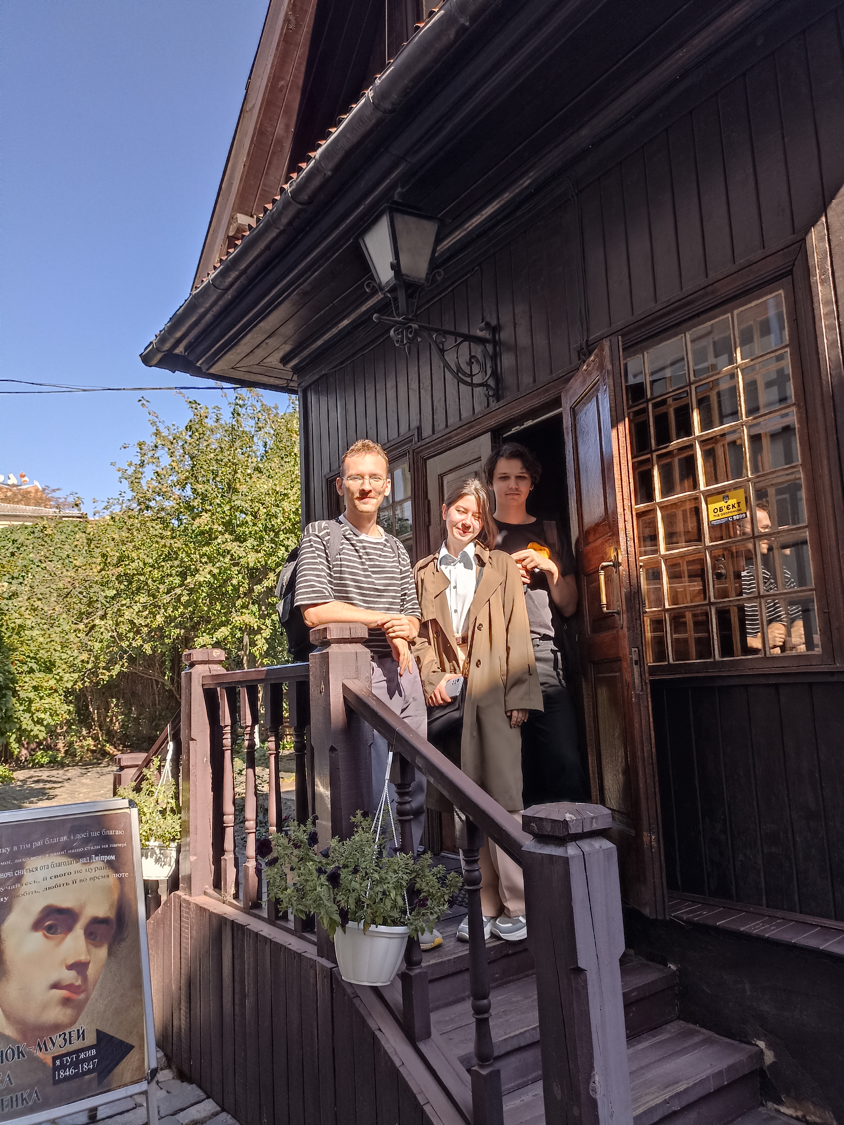 21 вересня 2024 р. магістранти групи ЗЛм-1-24-1.4д Анна Петренко, Уляна Радіч, Олександр Кобилинський, Андрій Журба разом із доцентом кафедри світової літератури Юлією Вишницькою відвідали Будинок-музей Тараса Шевченка. У самому центрі Києва, посеред модерних будівель, виросло місце сили - будинок з мансардою, з внутрішнім двориком, де вже понад двісті років росте шовковиця, ягодами якої ласував і Тарас Шевченко, з котами - господарями подвір'я, з трояндовими клумбами й великим гостинним столом для чаювання...