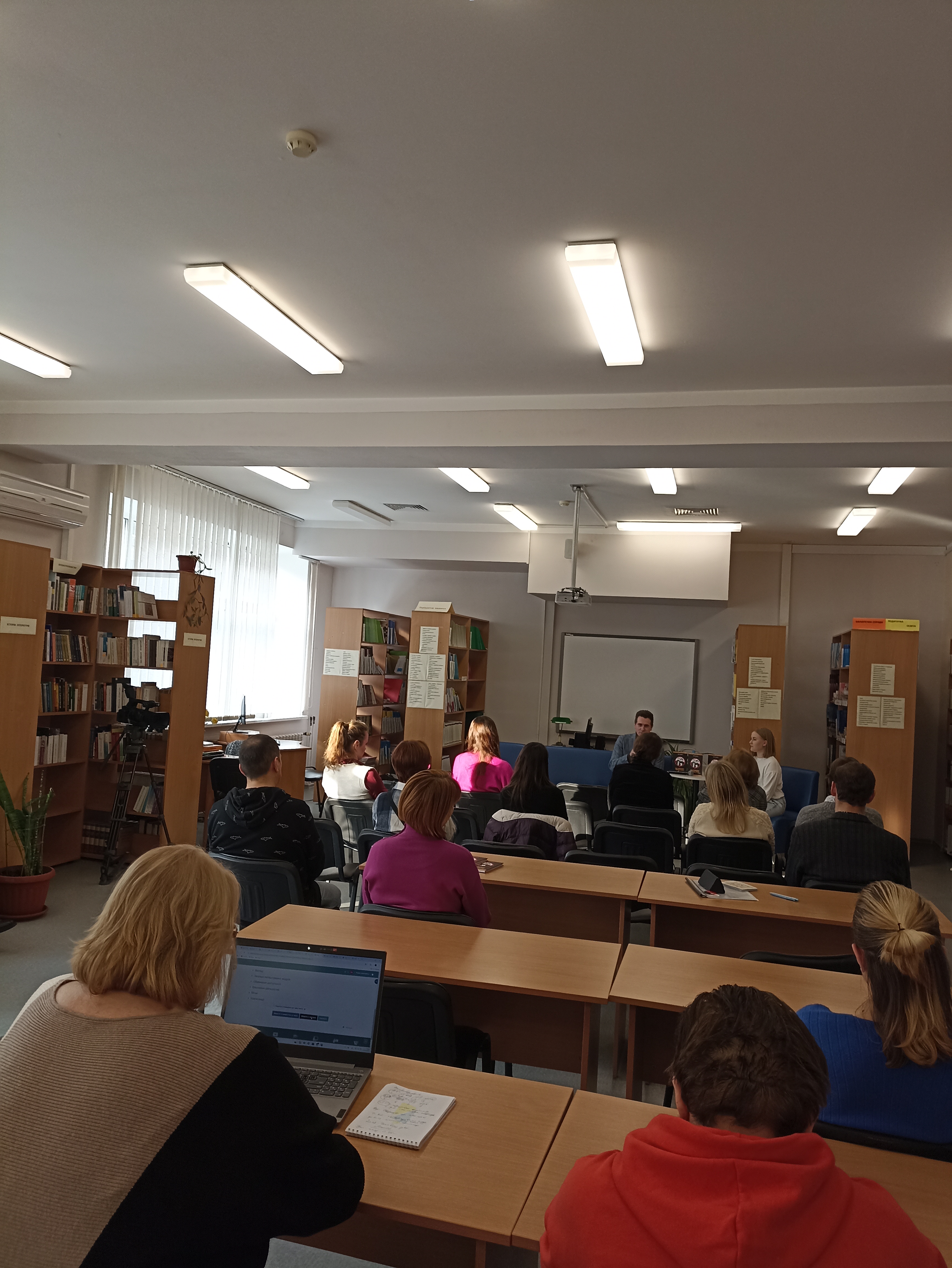 Захід відбувався в читальній залі бібліотеки Університету Грінченка. Модерувала розмову голова студради ФУФКМ, здобувач освіти за спеціальністю ВТП Вікторія Ляшенко. Презентацію книги відвідали