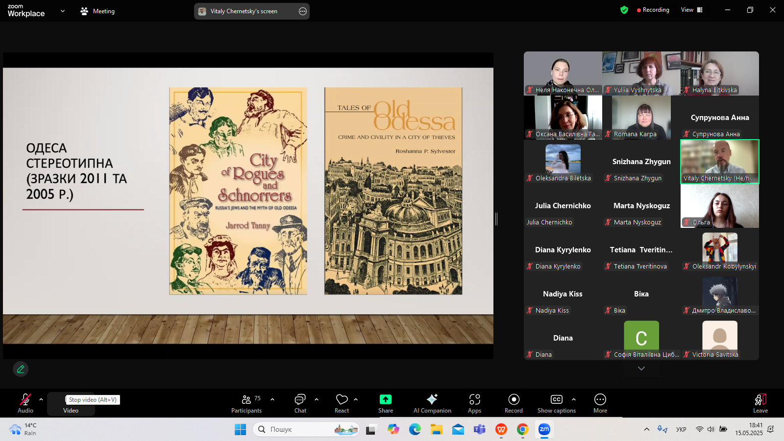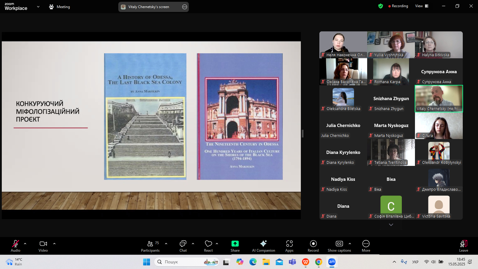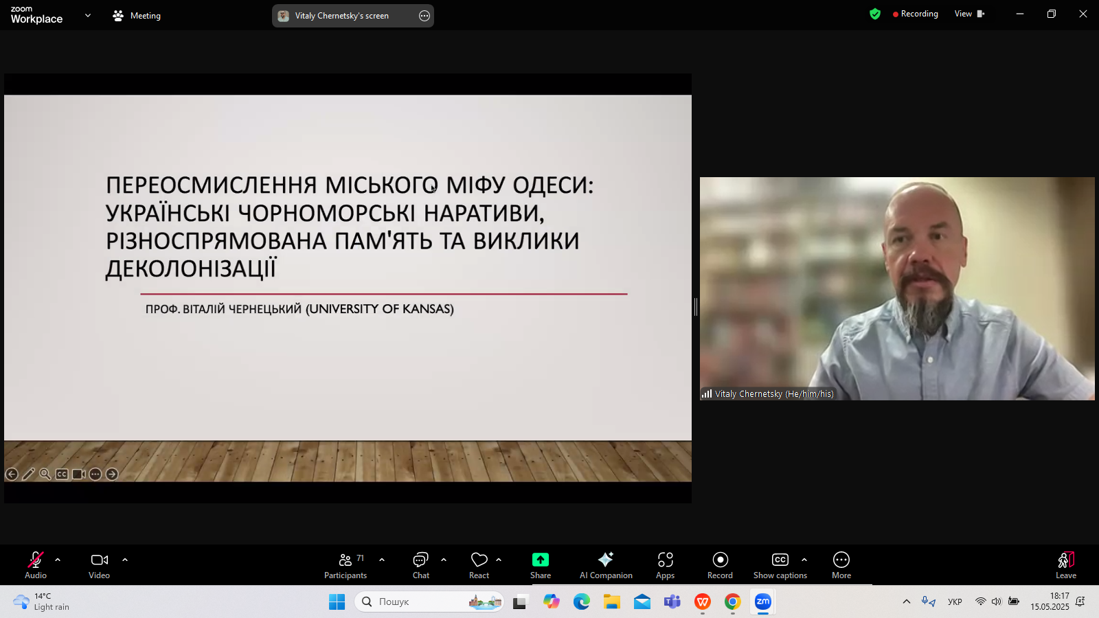 З нагоди Фестивалю Науки-2025 Університету Грінченка кафедра світової літератури організувала 15 травня 2025 р. лекцію професора Віталія Чернецького (Університет Канзасу, США) – літературознавця, перекладача, президента Наукового товариства імені Тараса Шевченка в США. Тема лекції: «Переосмислення міського міфу Одеси: українські чорноморські наративи, різноспрямована пам’ять та виклики деколонізації».