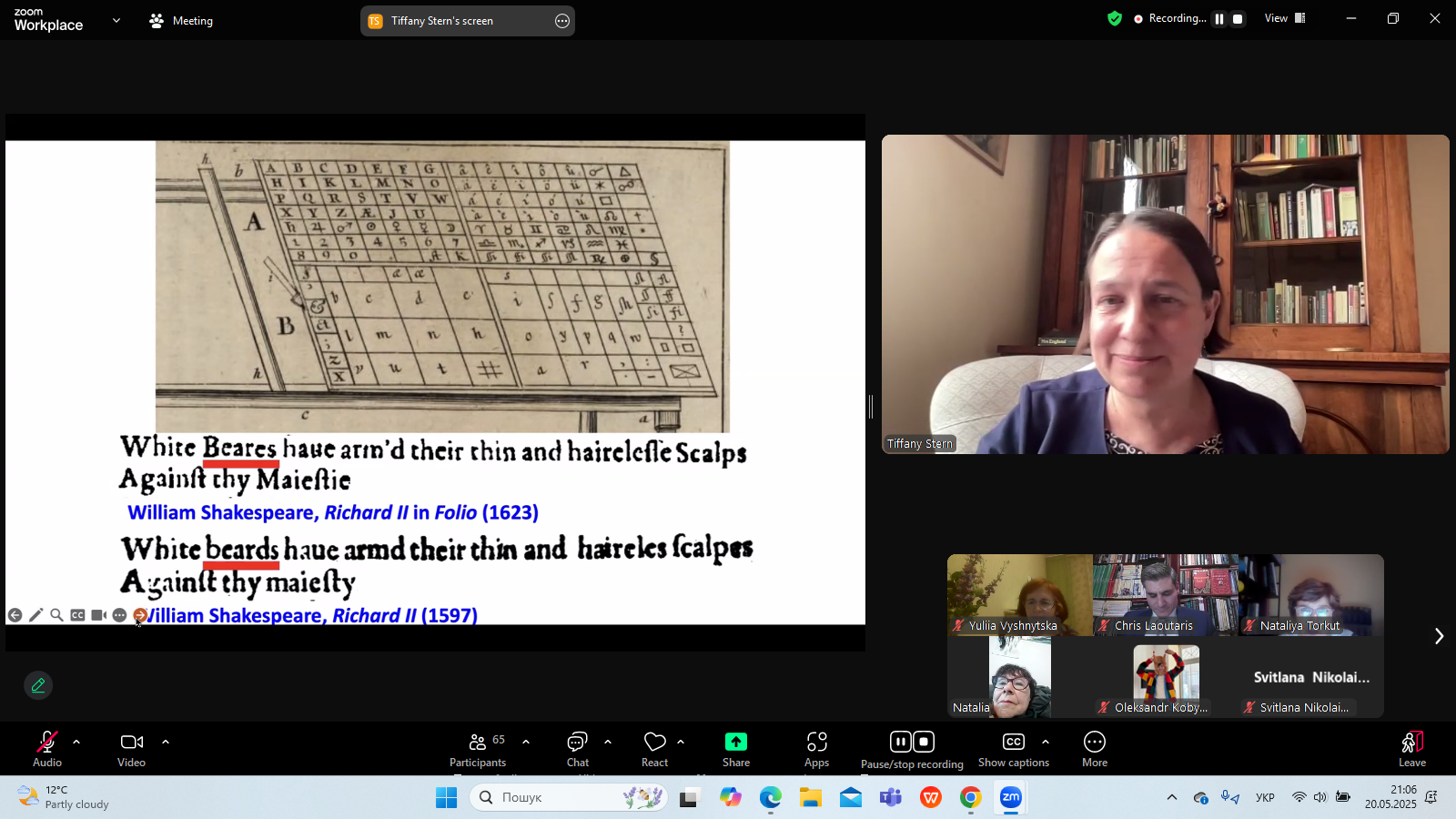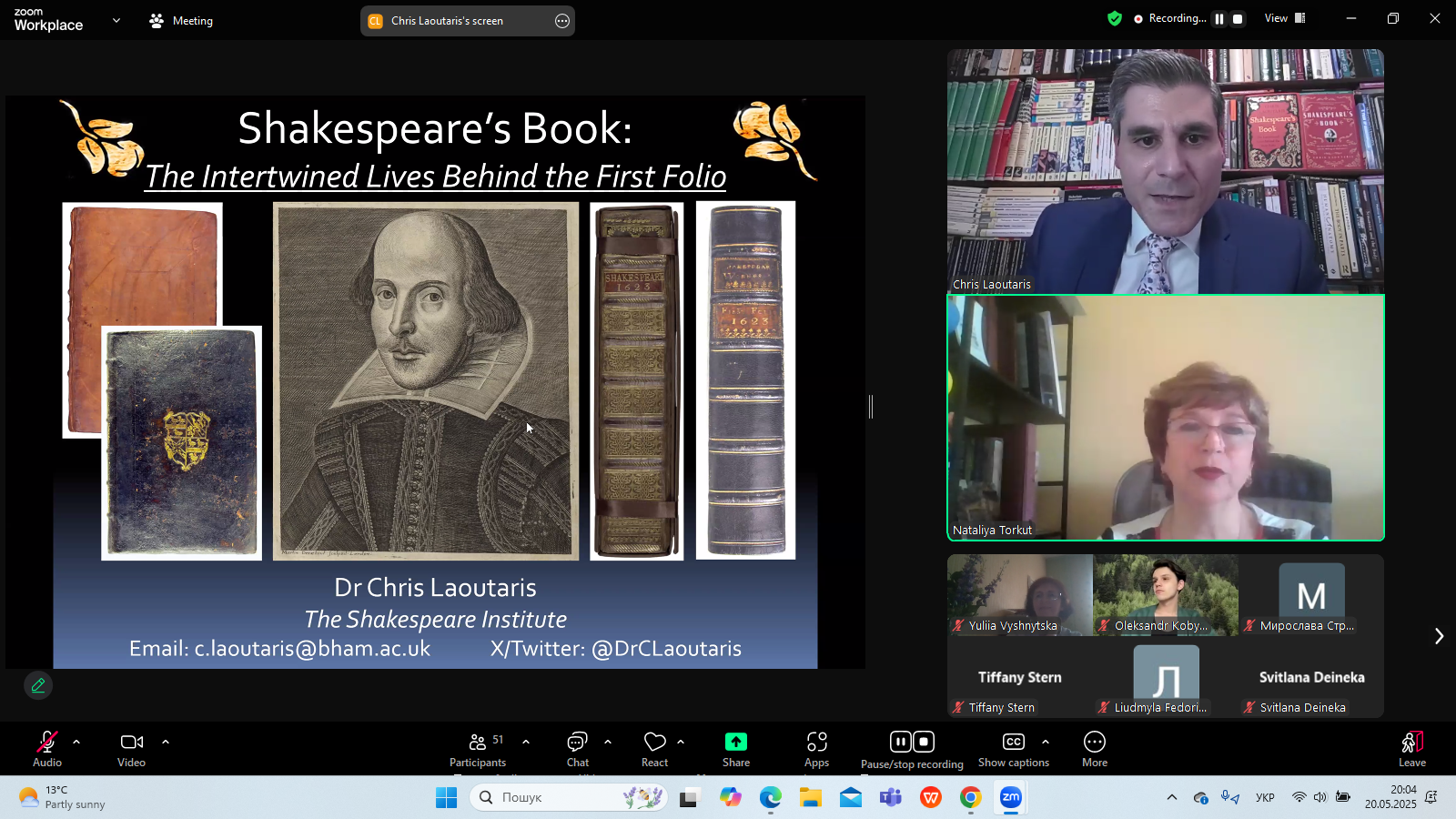 20 травня 2025 р. в межах Днів Шекспіра в Україні - 2025, які організовує Український шекспірівський центр на чолі з професором Наталією Торкут, відбулася публічна бінарна лекція фахівців із Шекспірівського інституту (Стретфорд-на- Ейвоні) "Sakespeare's First Folio: Facts, Riddles, Paradoxes"