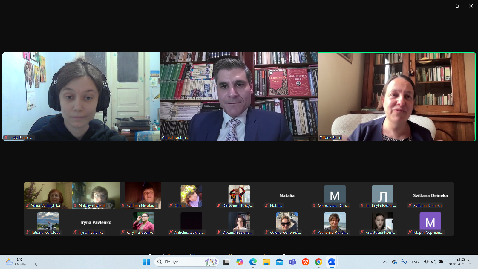 В Zoom-залі перебували й грінченківці: другокурсники романо-германської філології, магістрант освітньої програми "Зарубіжна література та світова художня культура" Олександр Кобилинський, викладачі кафедри світової літератури професор Оксана Гальчук та доцент Юлія Вишницька.
