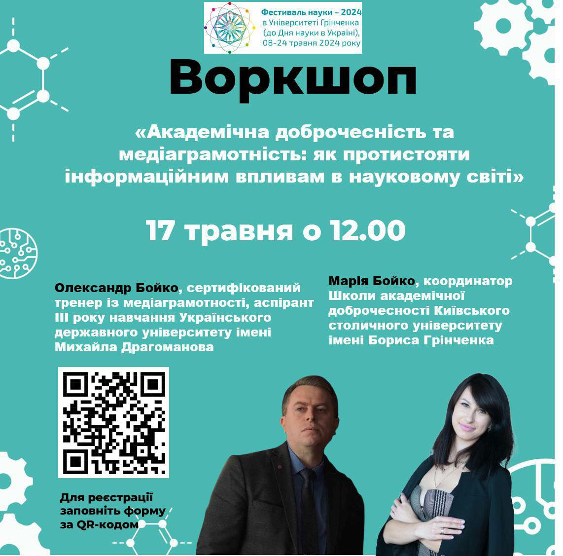 ФЕСТИВАЛЬ НАУКИ-2024. Воркшоп «Академічна доброчесність та медіаграмотність: як протистояти інформаційним впливам у науковому світі»