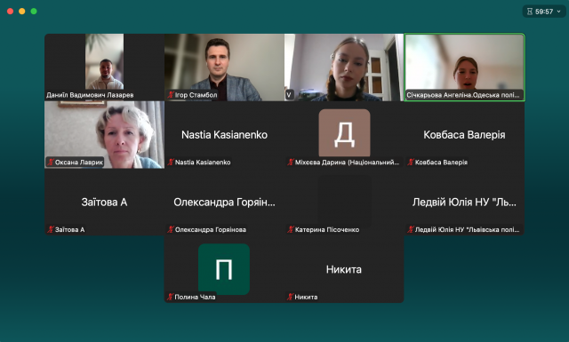 Модерували захід Олена Григоревська, професор кафедри інформаційних комунікацій, Ігор Стамбол, доцент кафедри та Євген Малюк, доцент кафедри, забезпечивши ефективну комунікацію між двома командами учасників, до складу яких увійшли здобувачі різних рівнів освіти трьох університетів.