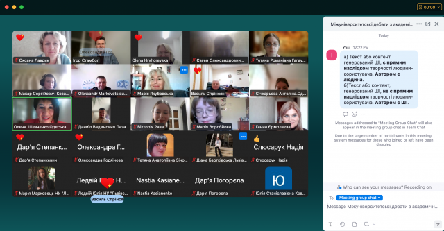 Дебати підтвердили важливість міжуніверситетської співпраці у формуванні культури авторського права, розвитку критичного мислення та відповідального використання ШІ в академічному середовищі.