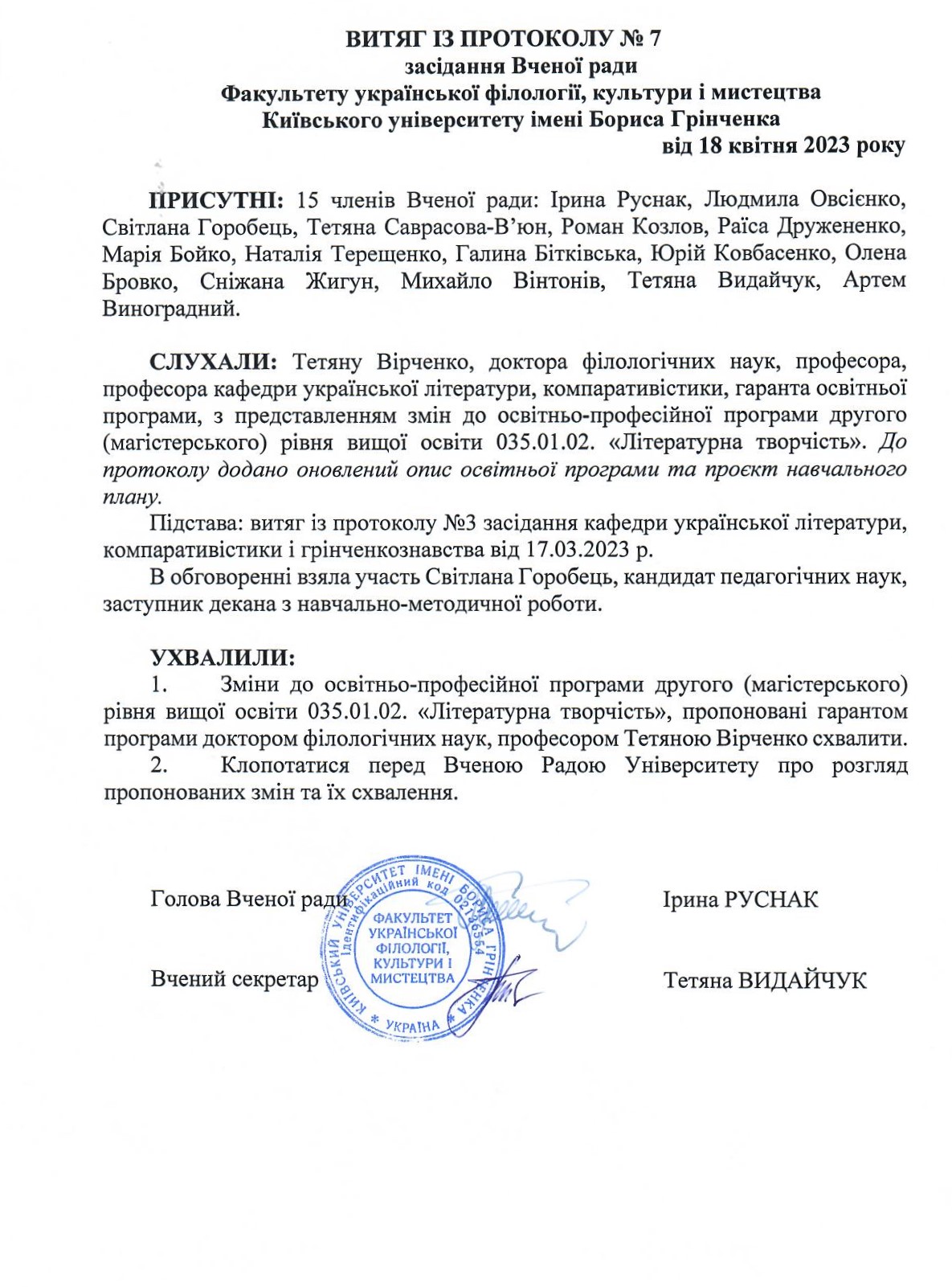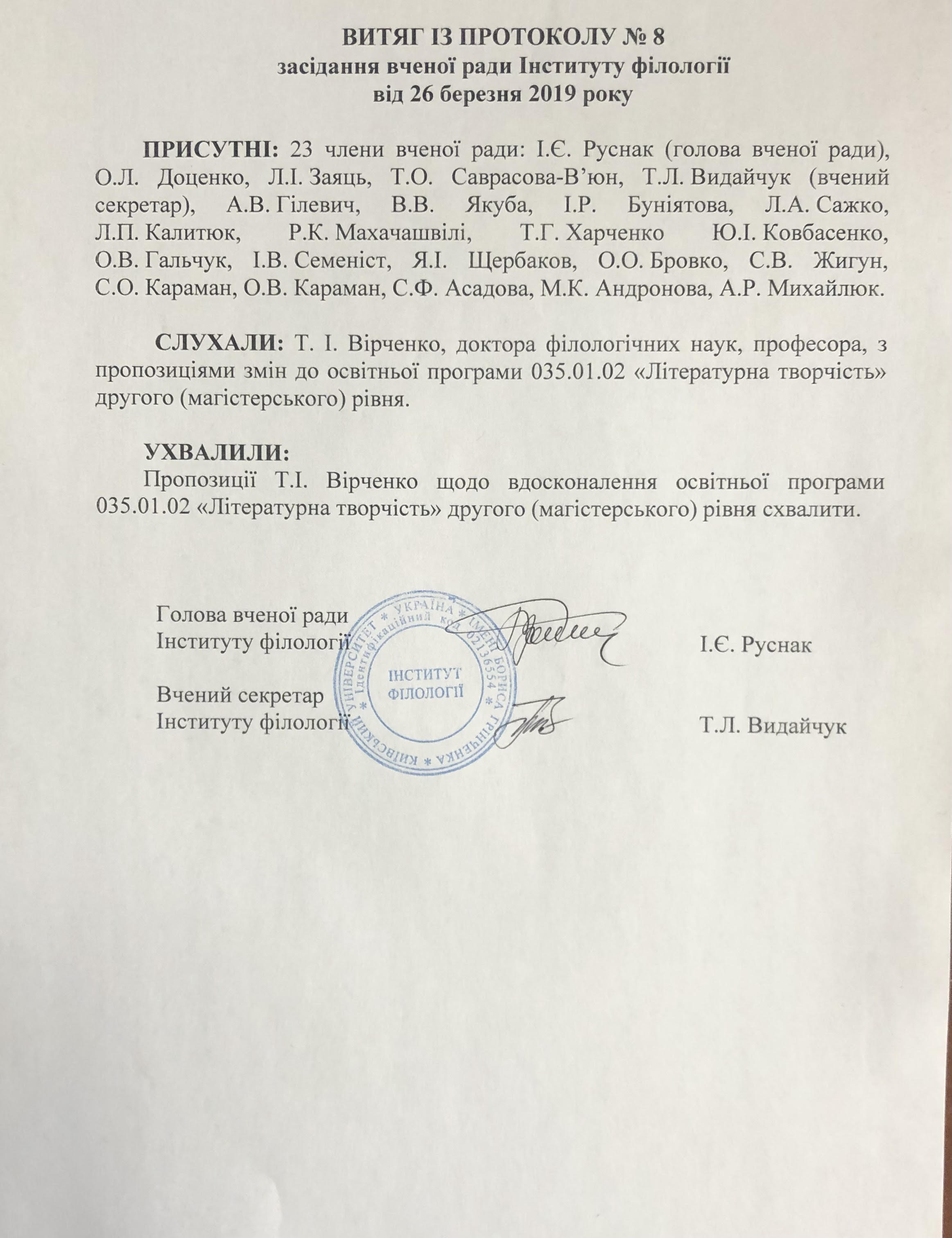 ОСВІТНЬО-ПРОФЕСІЙНА ПРОГРАМА "ЛІТЕРАТУРНА ТВОРЧІСТЬ" спеціальності 035 "Філологія"