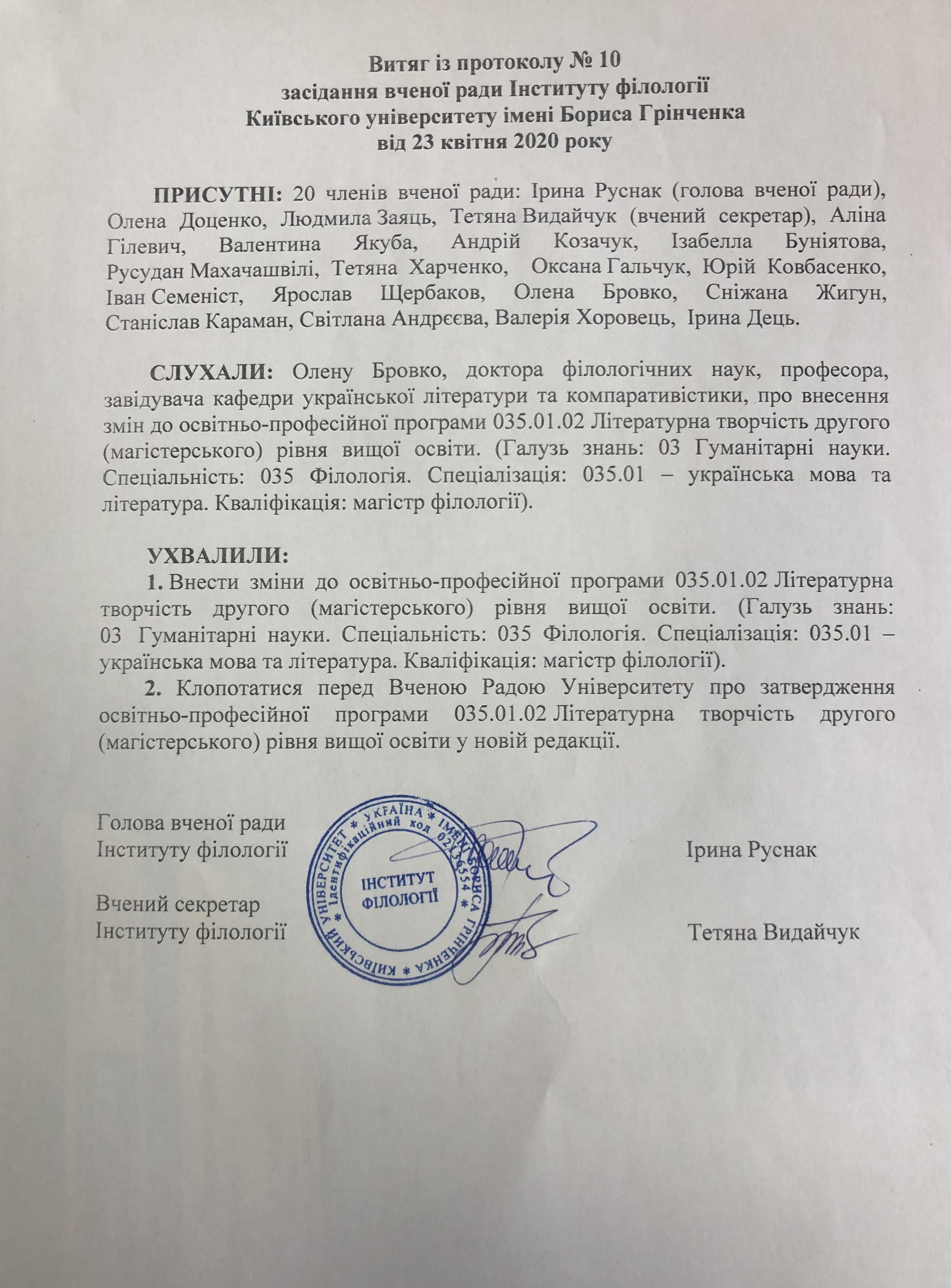 ОСВІТНЬО-НАУКОВА ПРОГРАМА "УКРАЇНСЬКА МОВА ТА ЛІТЕРАТУРА" спеціальності 035 "Філологія"